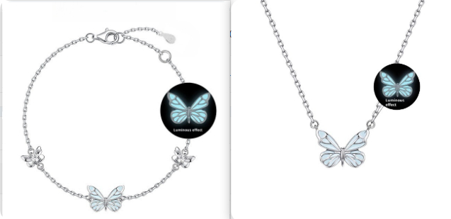 Color: S925 light-emitting butterfly bracelet, S925 light-emitting butterfly stud, S925 light-emitting butterfly necklace, S999 light-emitting butterfly bracelet, S999 light-emitting butterfly stud, s999 light-emitting butterfly necklace