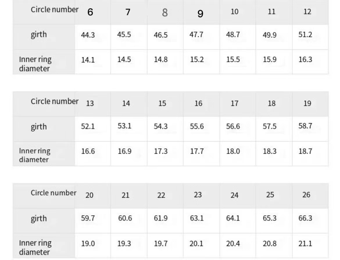 Size table: