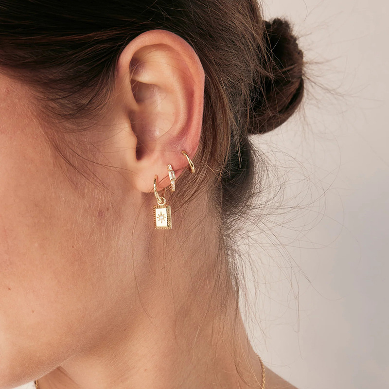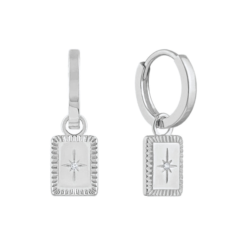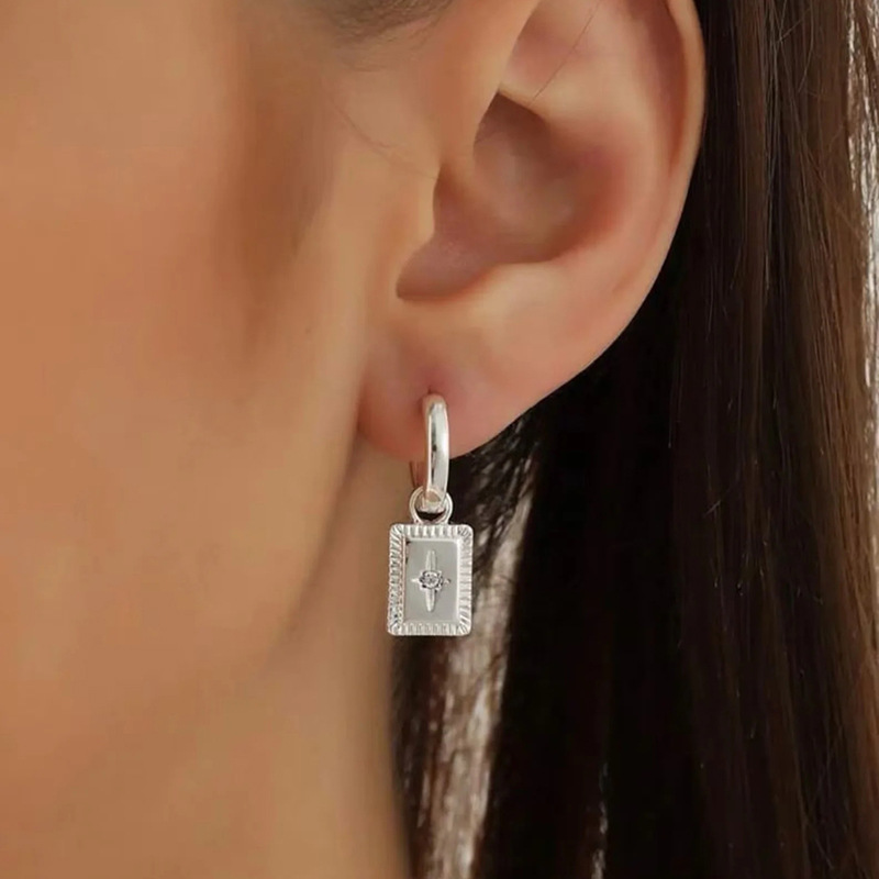Sterling Silver Needle Eight Awn Star Geometric Ear Clip Diamond Embedded Star Square Pendant Earrings