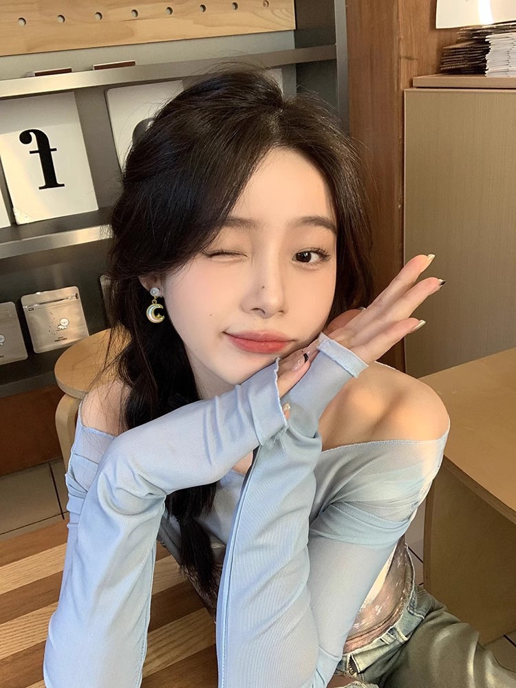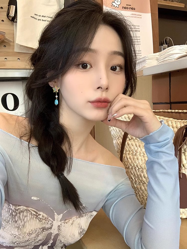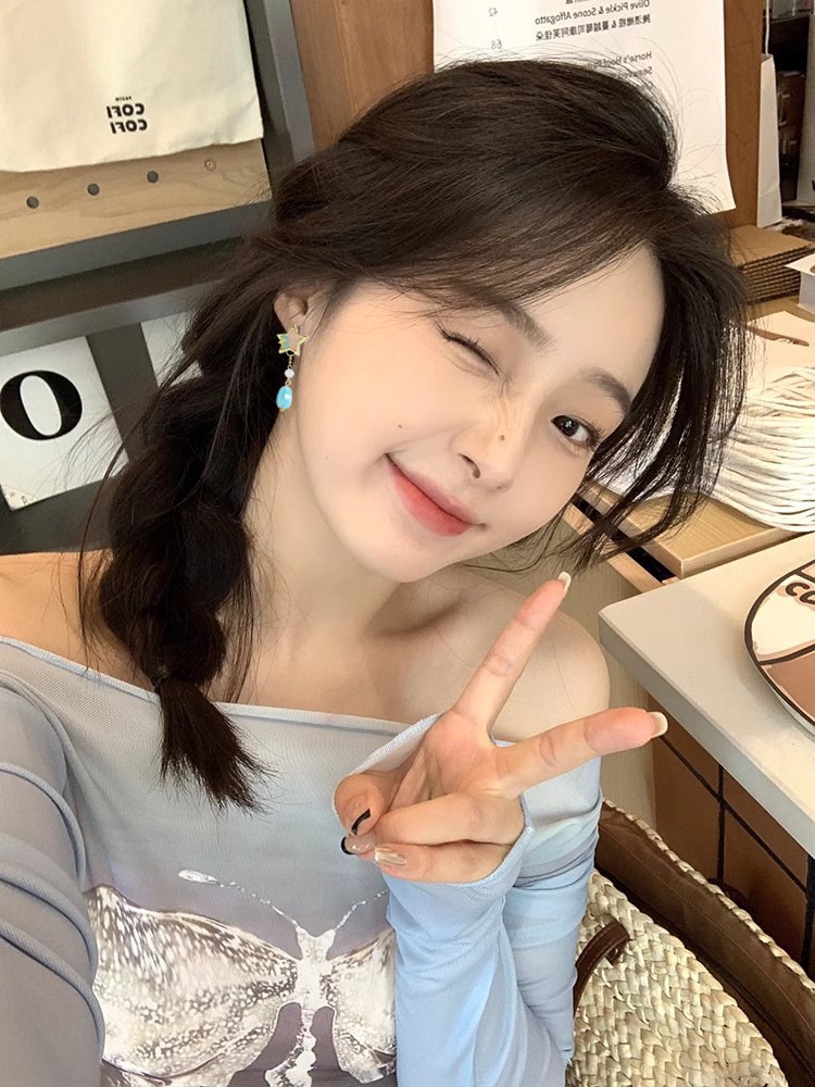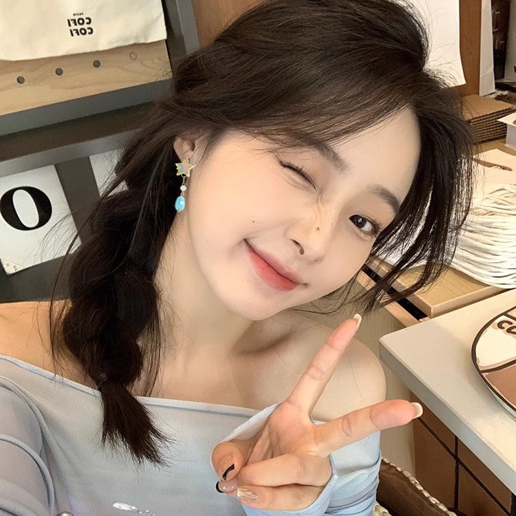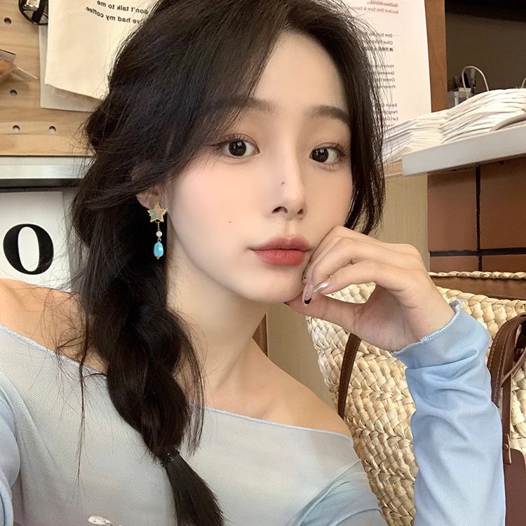 Color: sterling silver needle asymmetric star and moon ear studs-as the main image