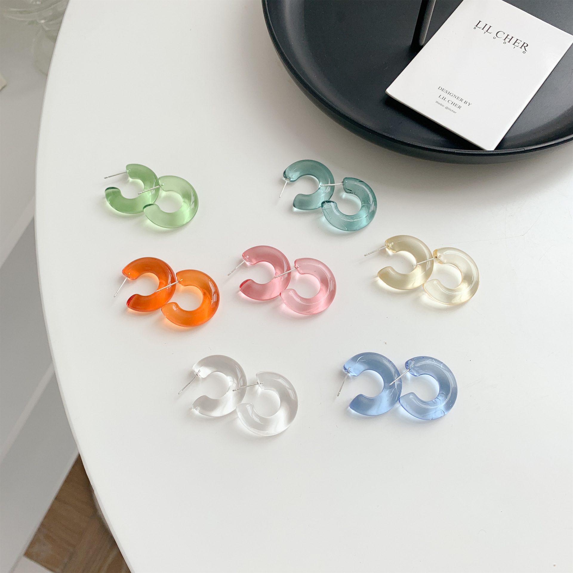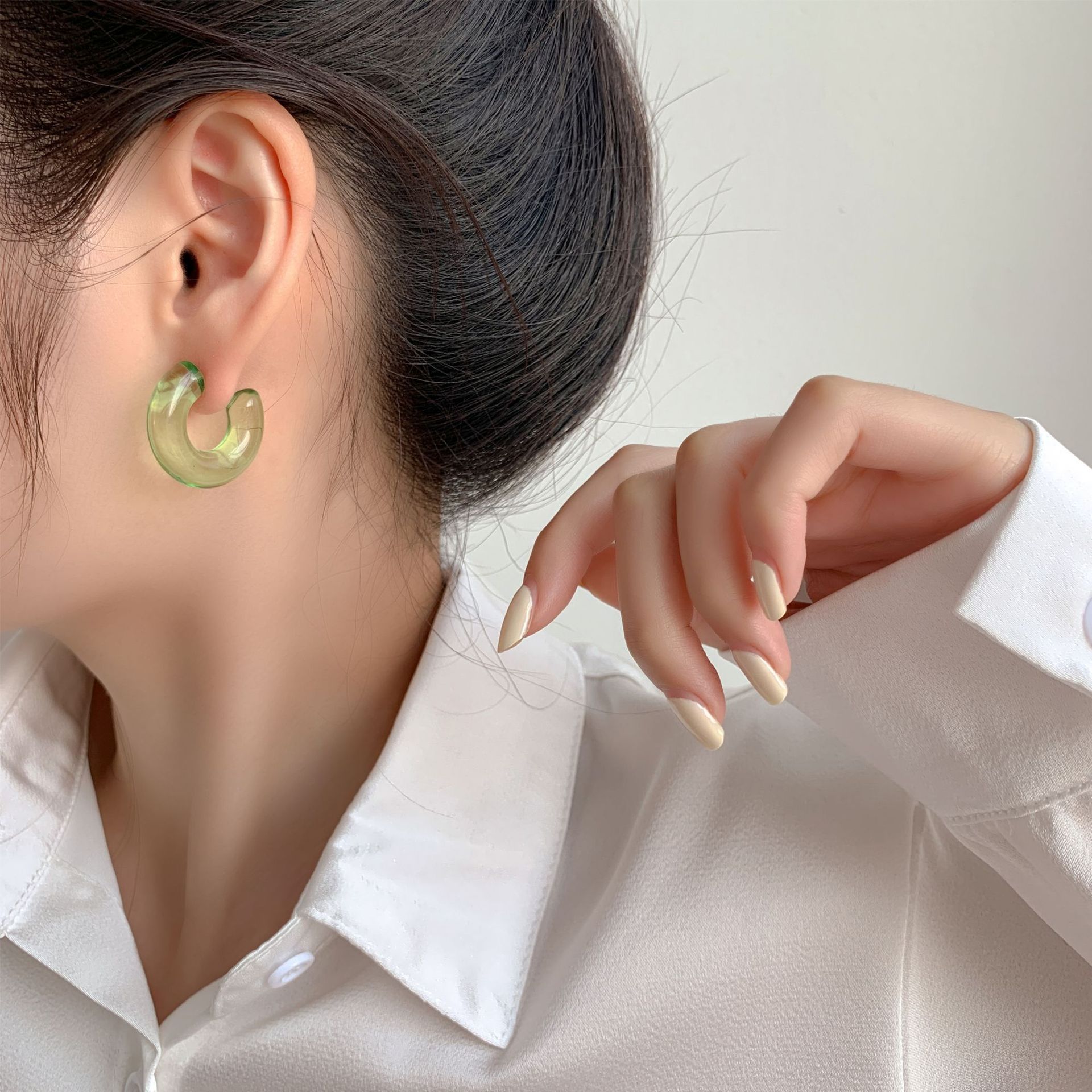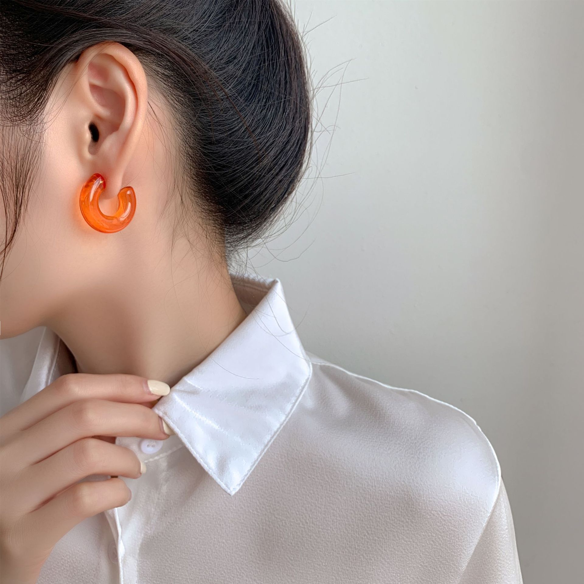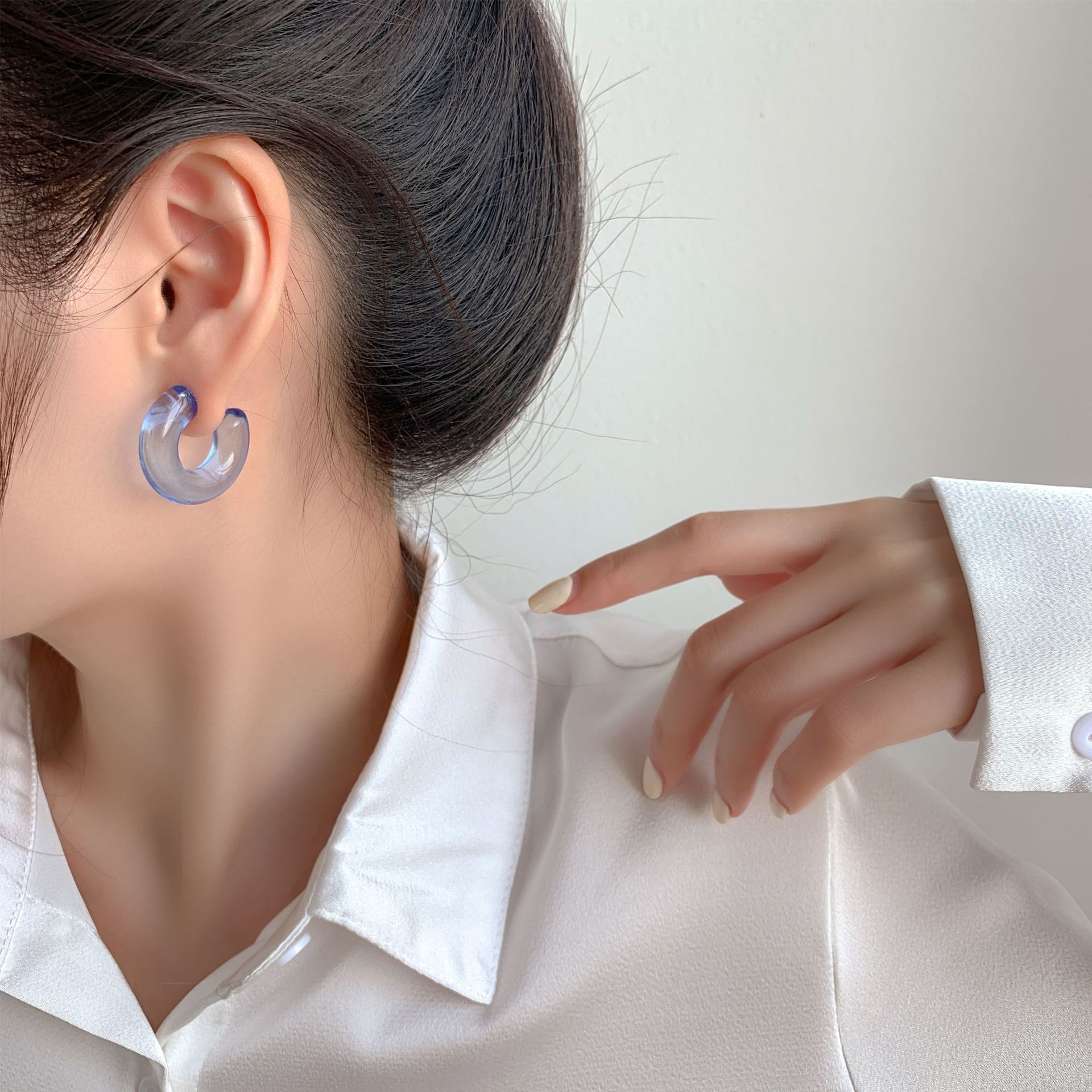Sterling Silver Needle Transparent Jelly Color C- Shaped Earrings Japanese And Korean Temperamental All-match Face Slimming Ear Ring