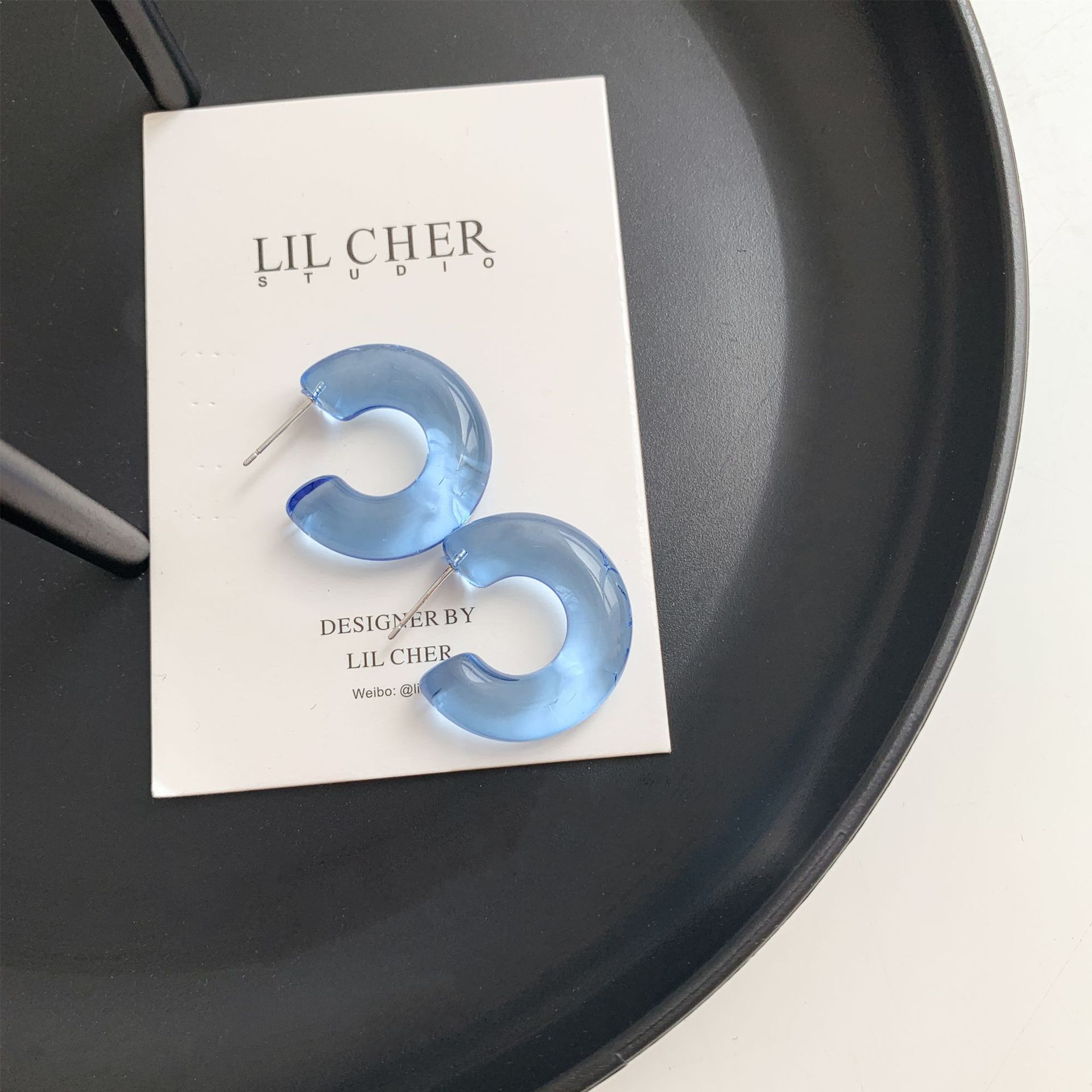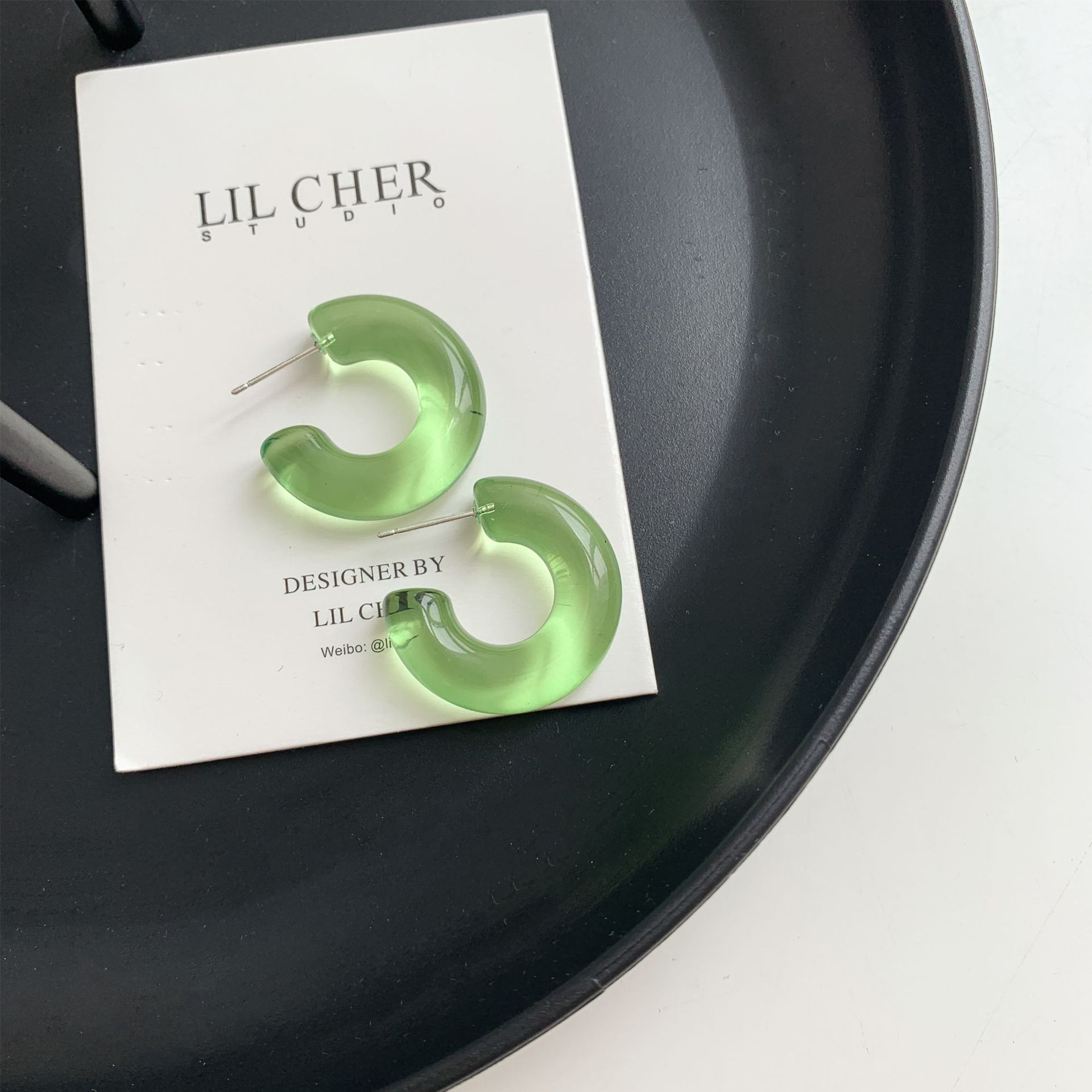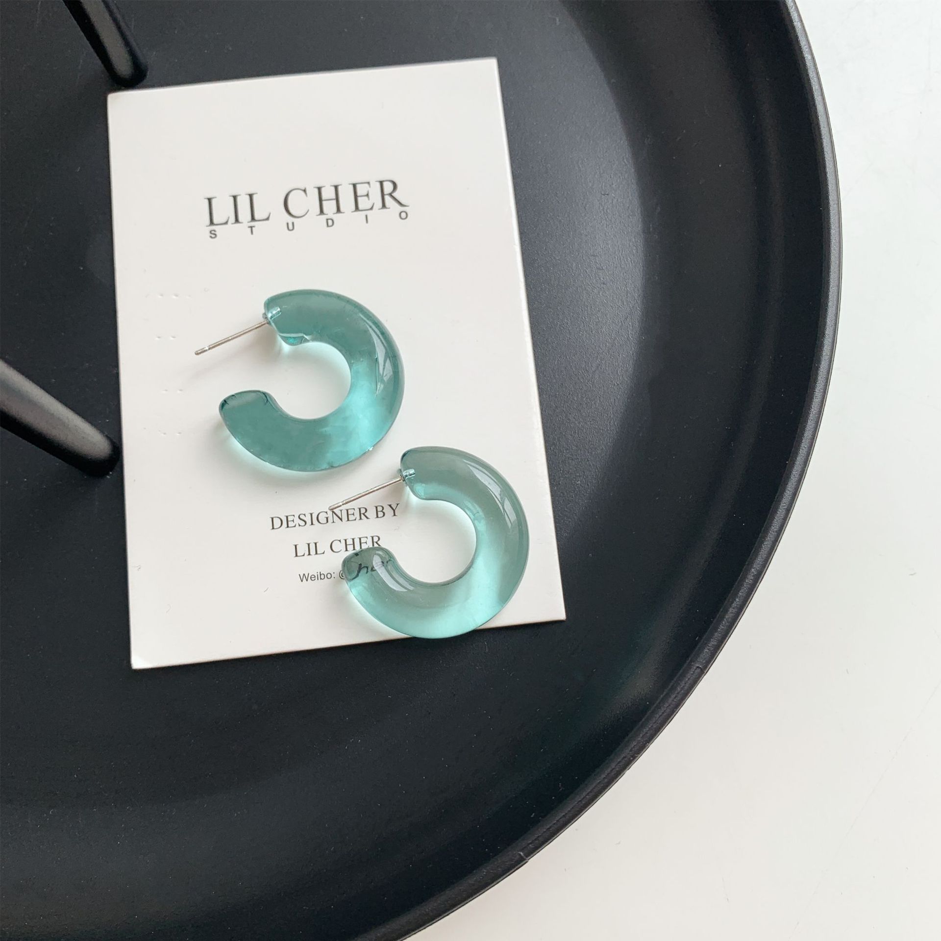 Sterling Silver Needle Transparent Jelly Color C- Shaped Earrings Japanese And Korean Temperamental All-match Face Slimming Ear Ring