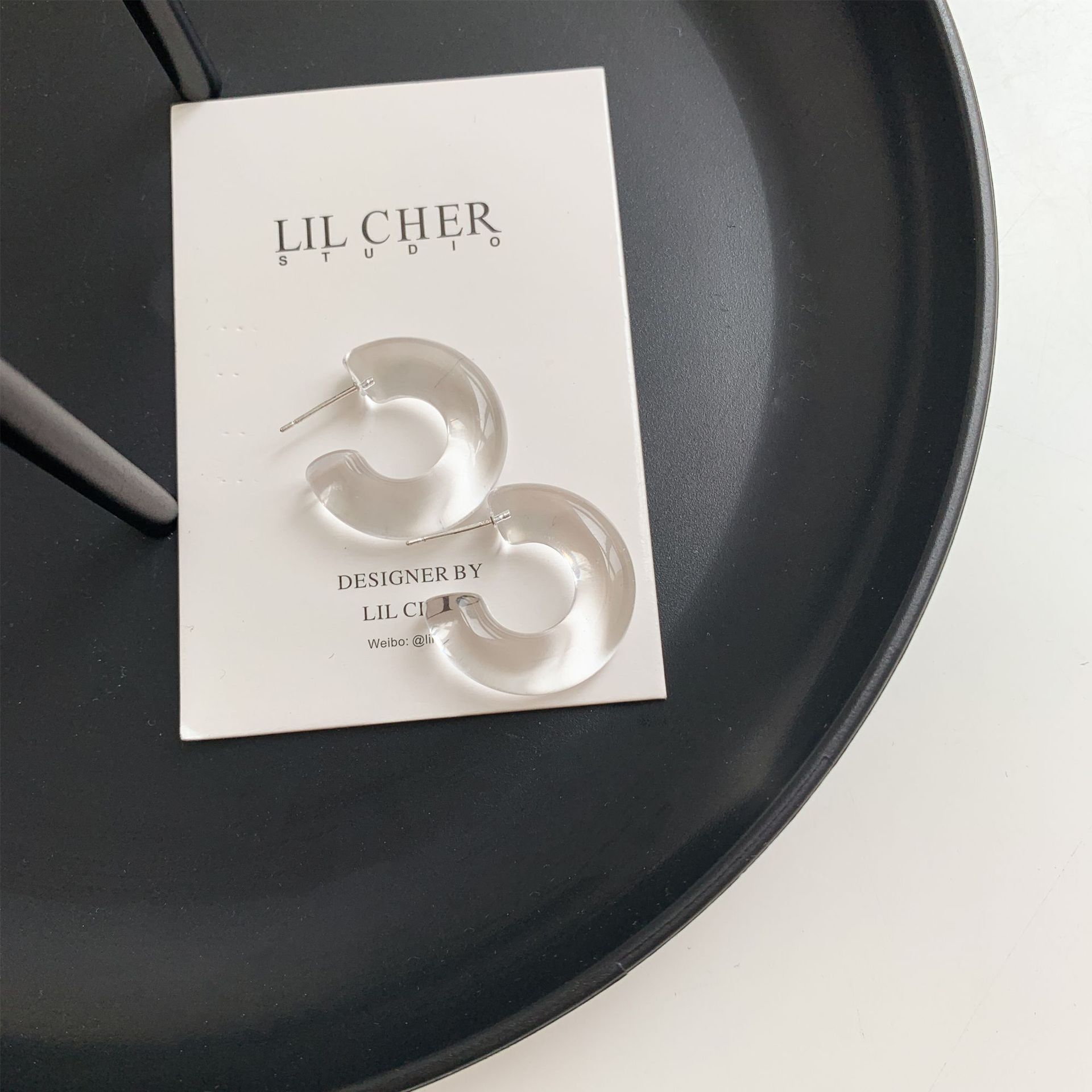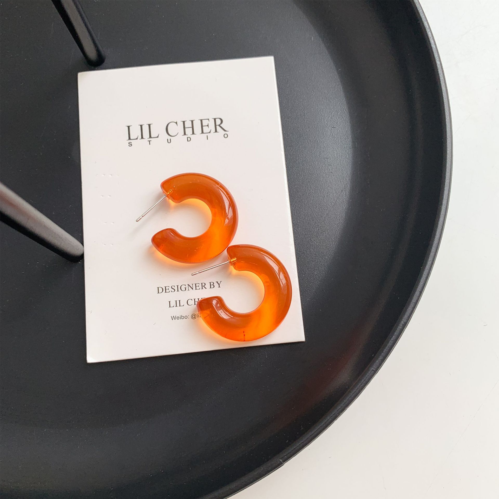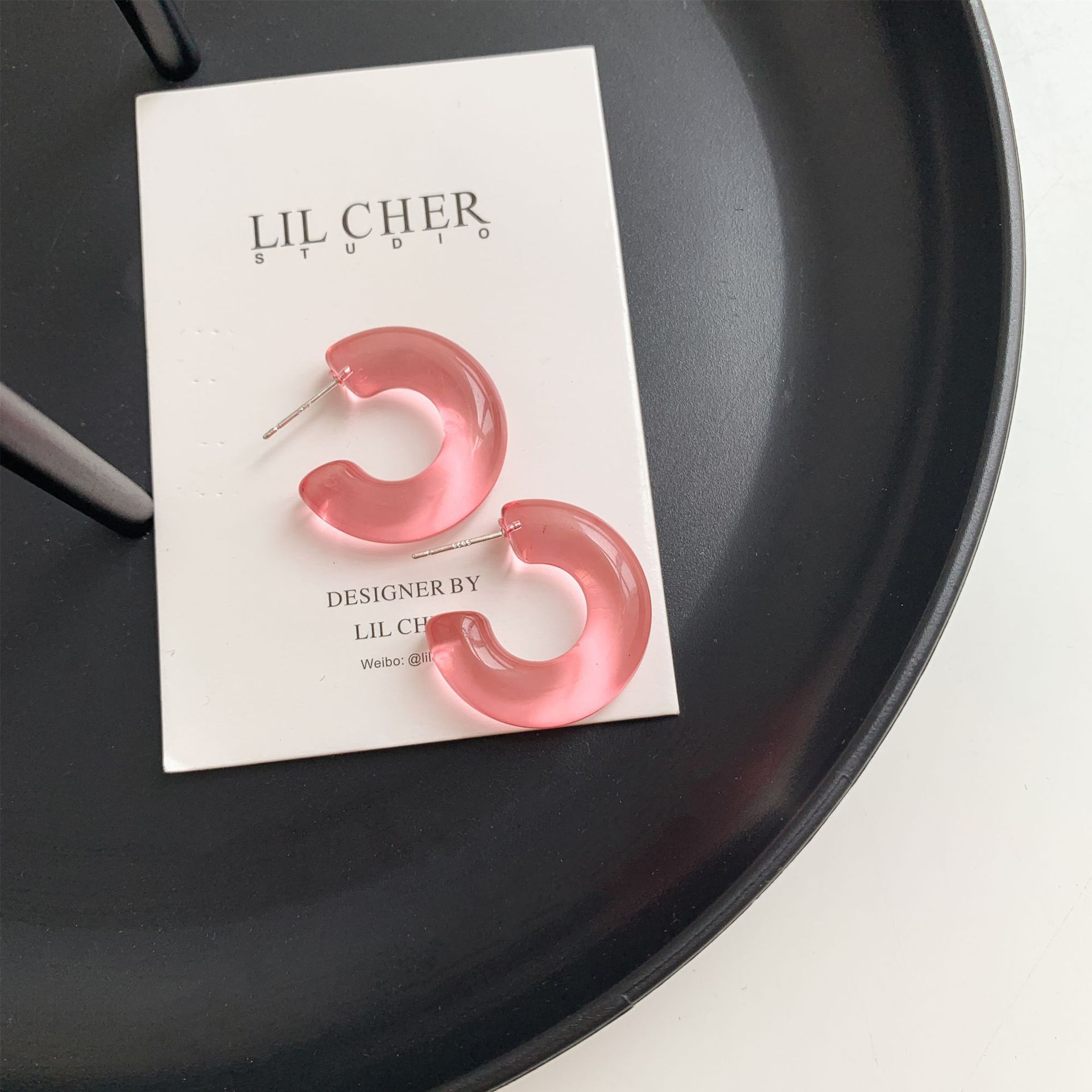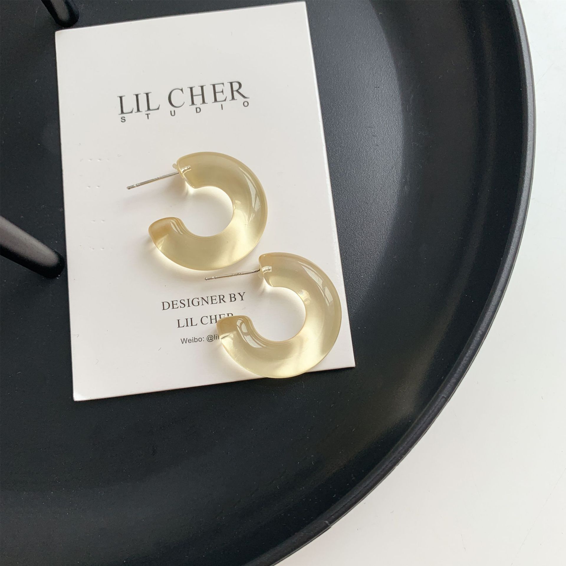 Sterling Silver Needle Transparent Jelly Color C- Shaped Earrings Japanese And Korean Temperamental All-match Face Slimming Ear Ring
