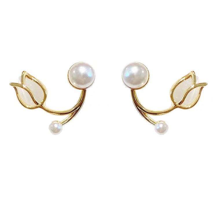 Sterling Silver Needle Tulip Stud Earrings For Women