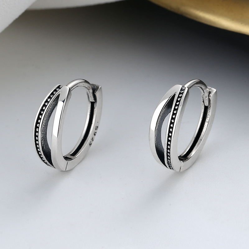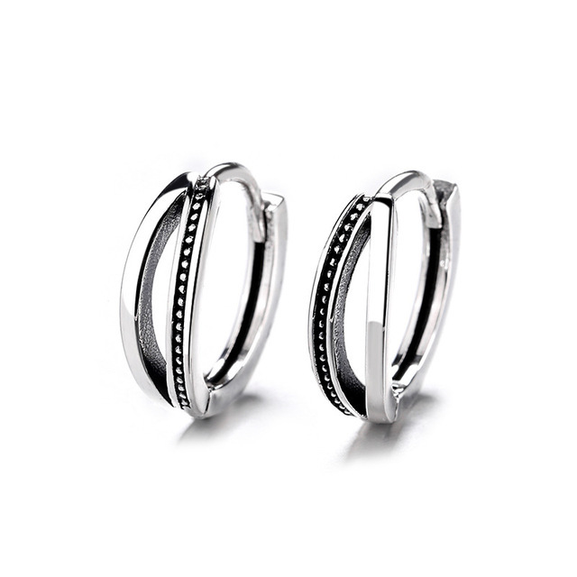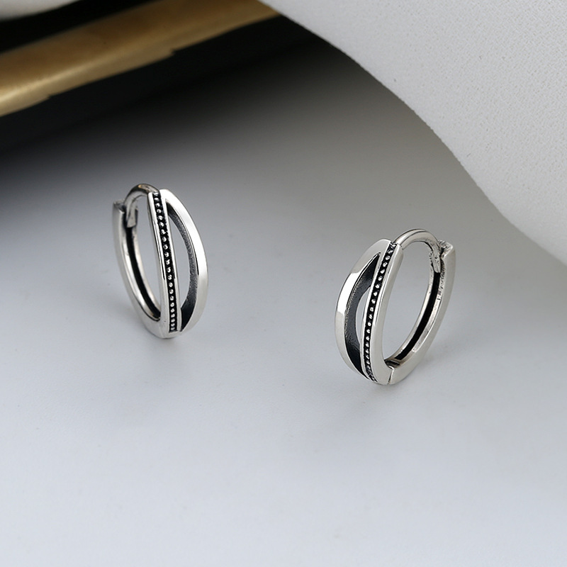 Sterling Silver Retro Distressed Geometric Earclip Earrings