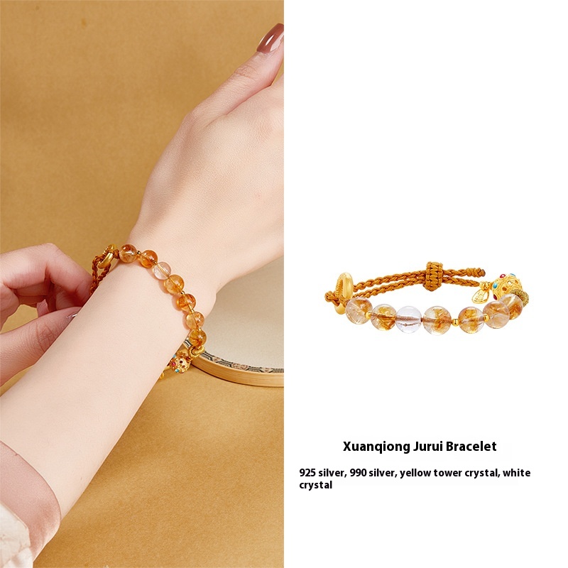 Sterling Silver Round Jade Pendant Huangtajing White Crystal New Chinese Female