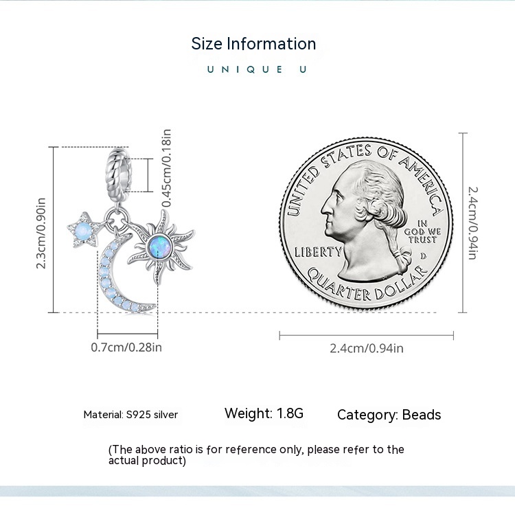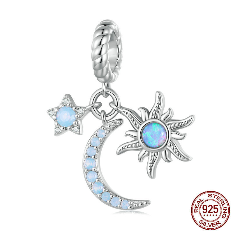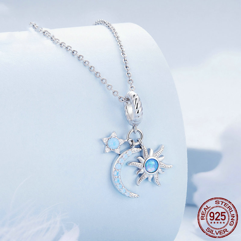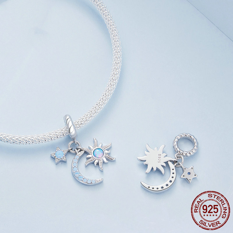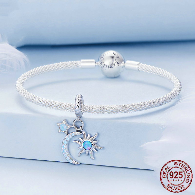 Sterling Silver S925 Sun Moon Star Pendant Bracelet