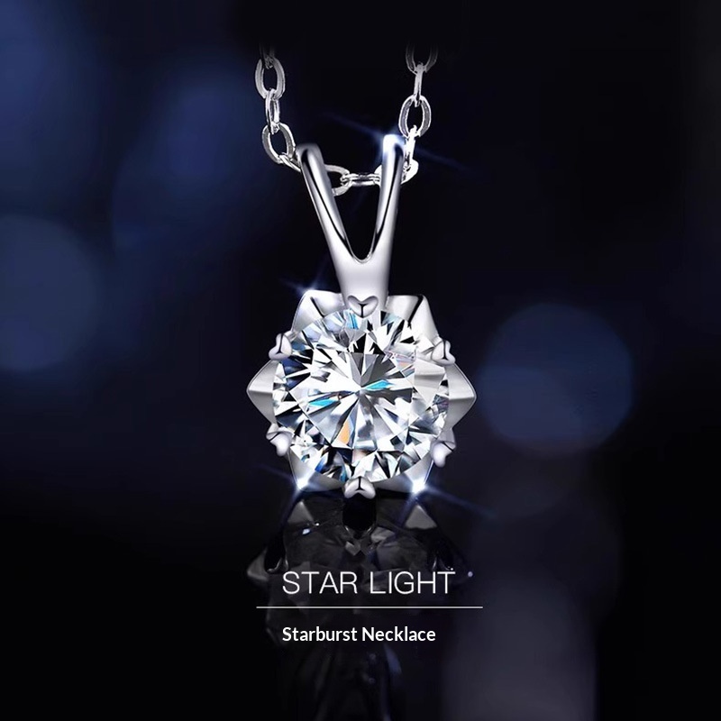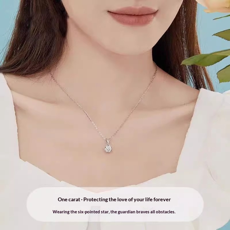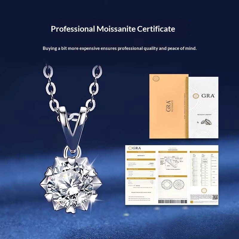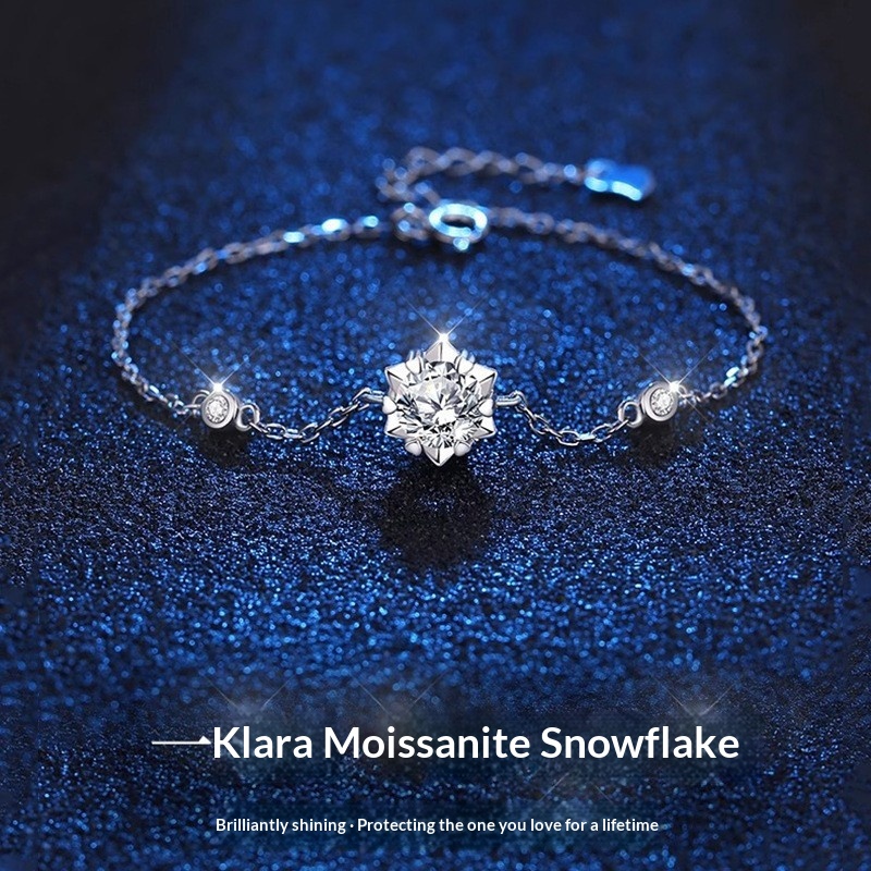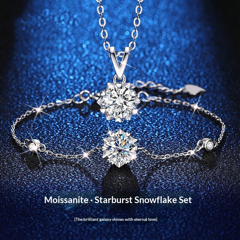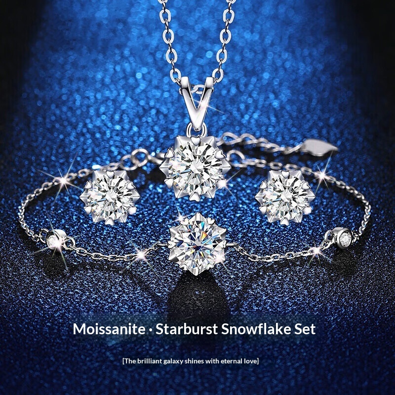 Color: D-color moissanite stud earrings—50 points, D-color moissanite necklace—1 carat, D-color moissanite bracelet—1 carat, D-color moissanite snowflake three-piece set