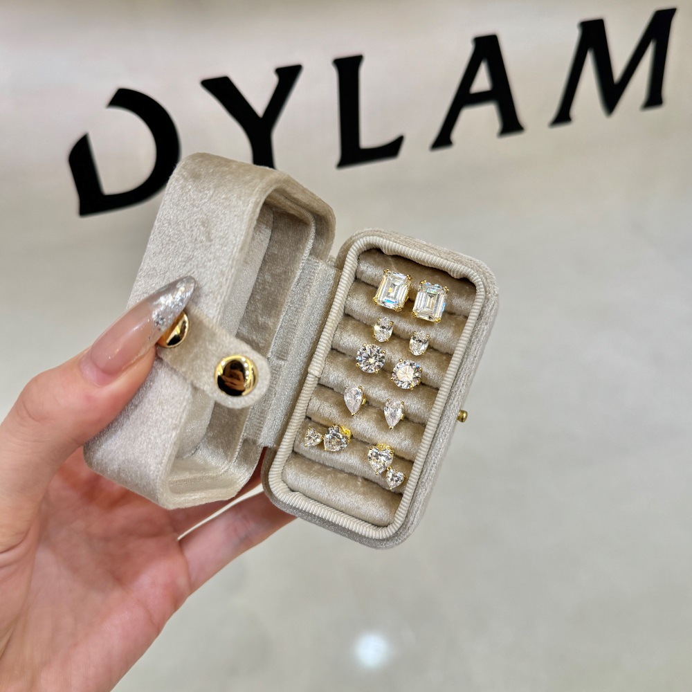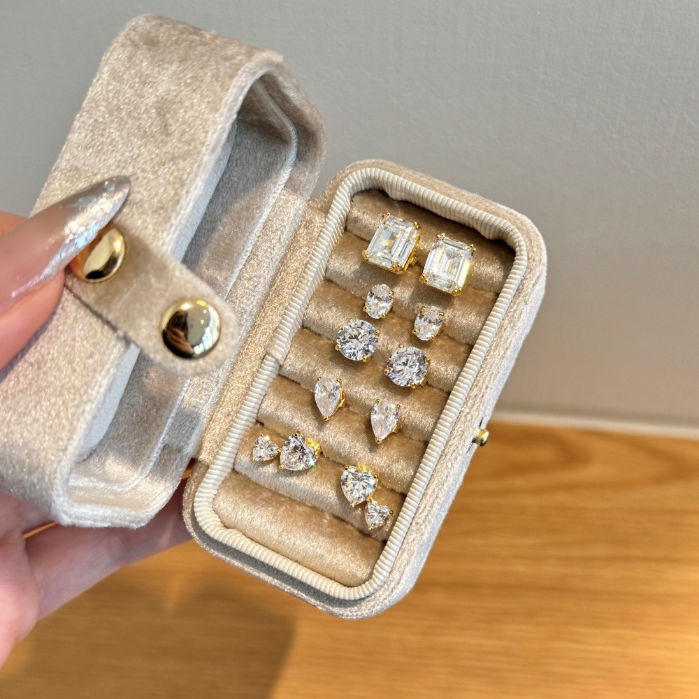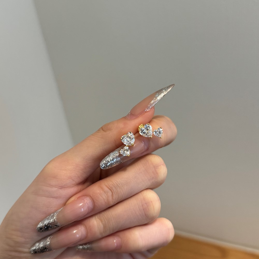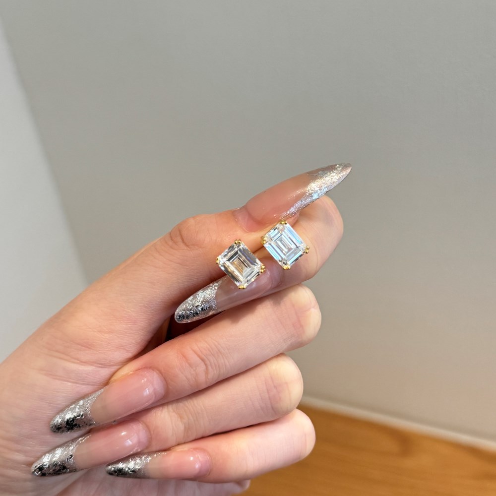 Sterling Silver Square Sugar Stud Earrings Four-claw White Heart Shape Stud Earrings