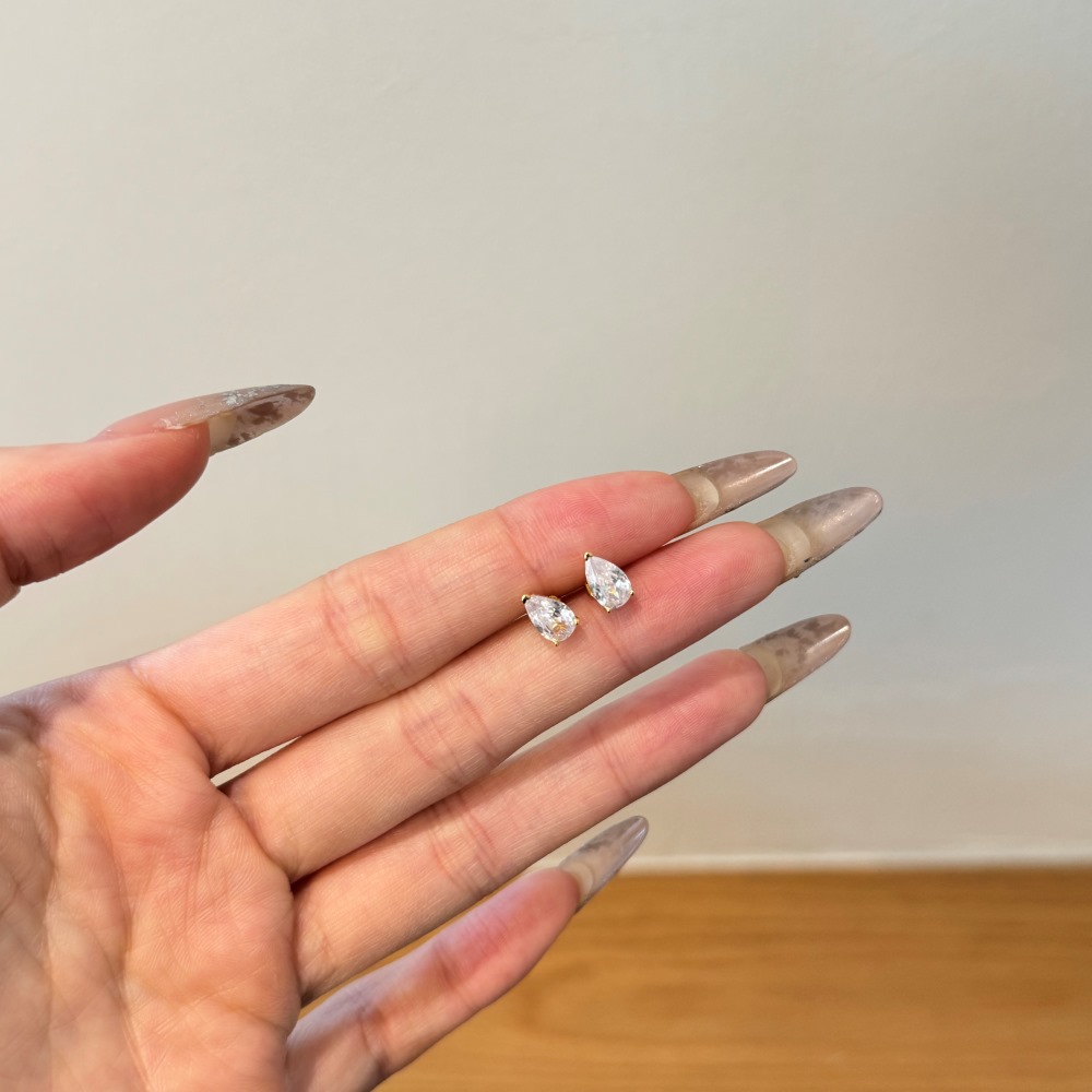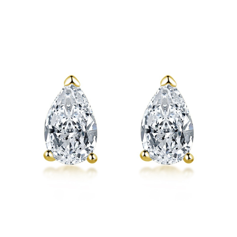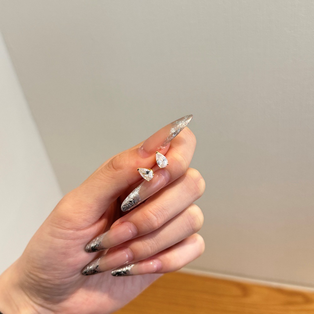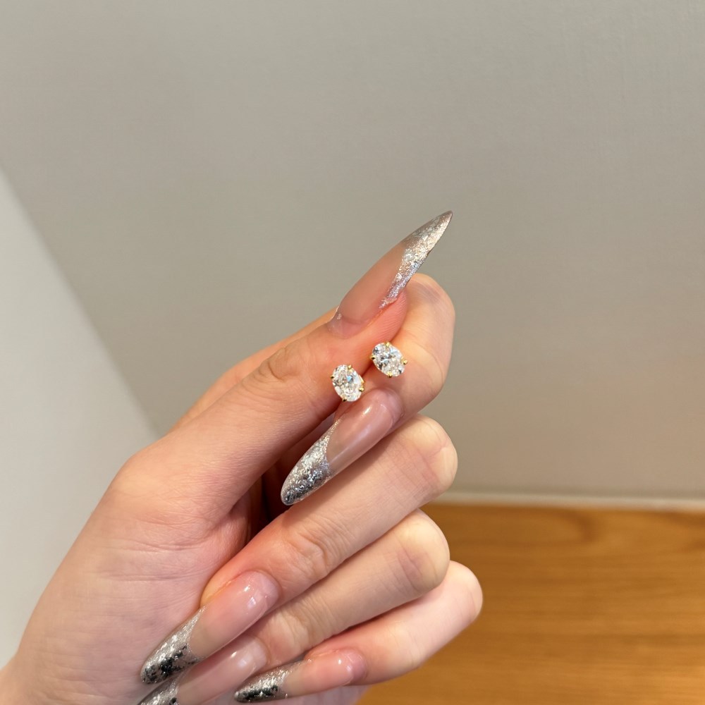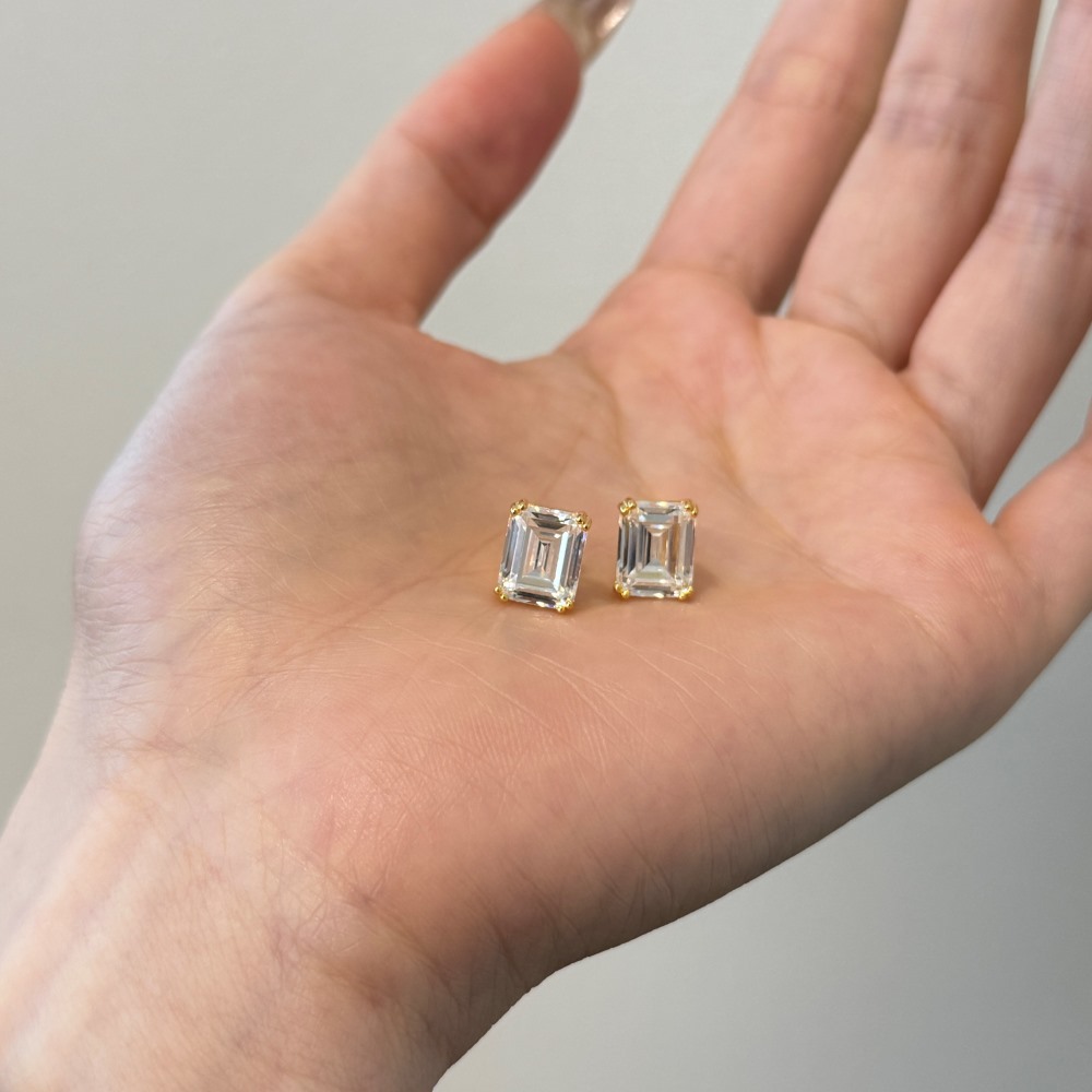 Sterling Silver Square Sugar Stud Earrings Four-claw White Heart Shape Stud Earrings