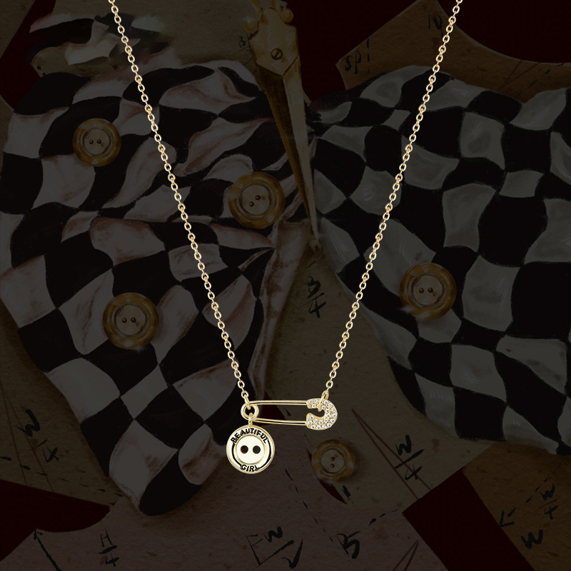 Name: Pin Button NecklaceMaterial: S925 silverSize: total chain length about 44.cm (including extension chain 5cm)