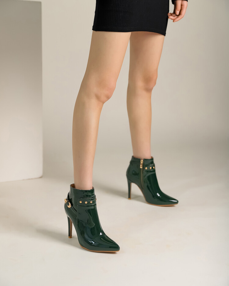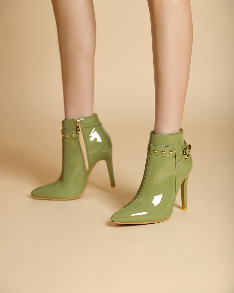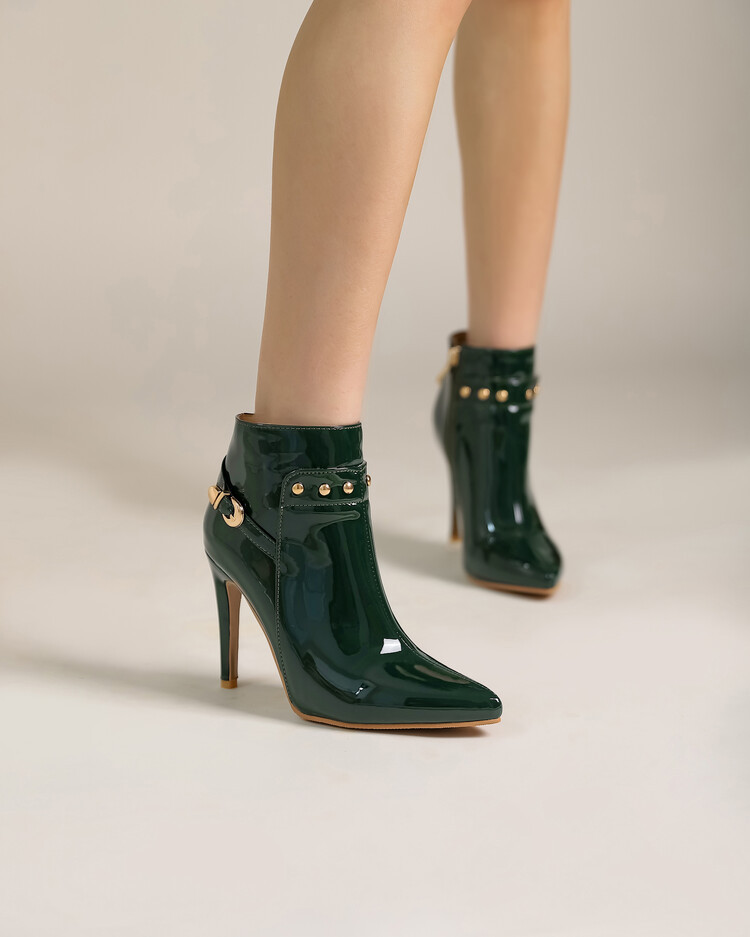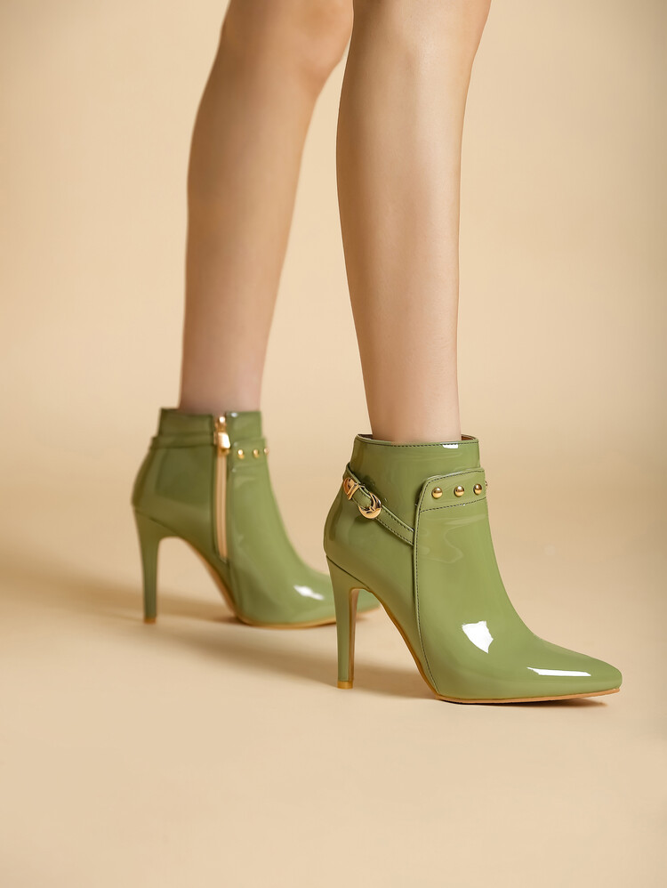 Stiletto-heeled Pointed-toe Low-cut Boots With Metal Studs