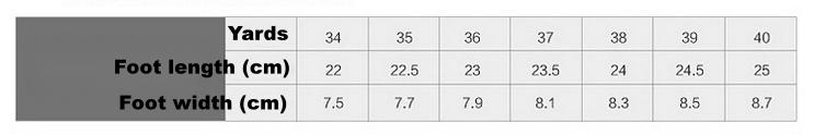 Size: 34, 35, 36, 37, 38, 39, 40