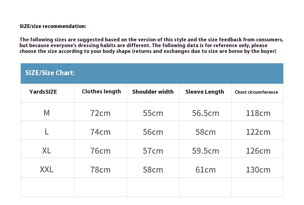 Size: M,L,XL,XXL