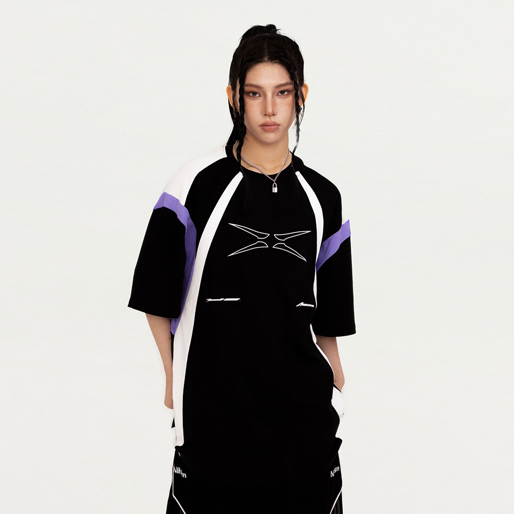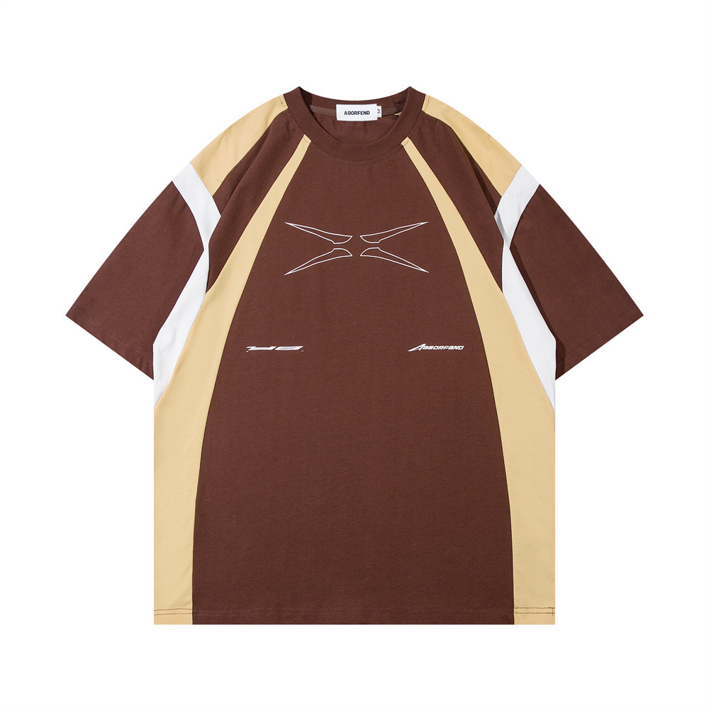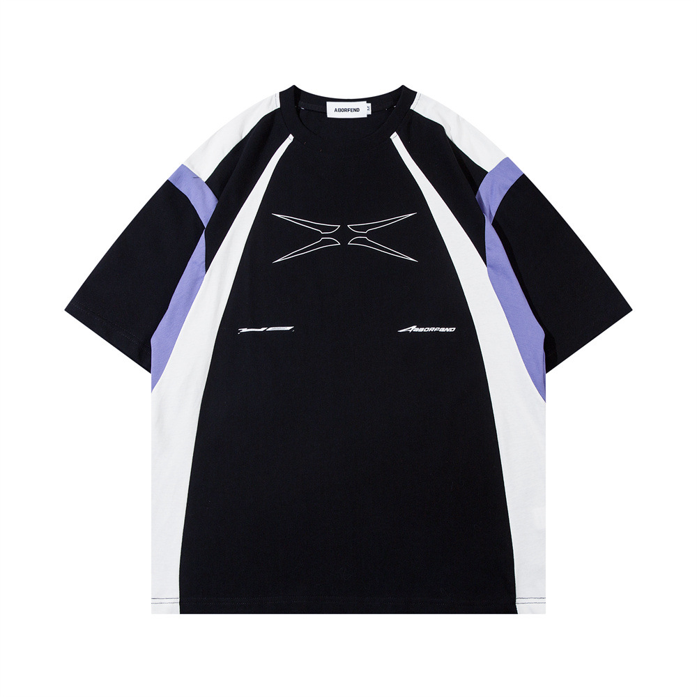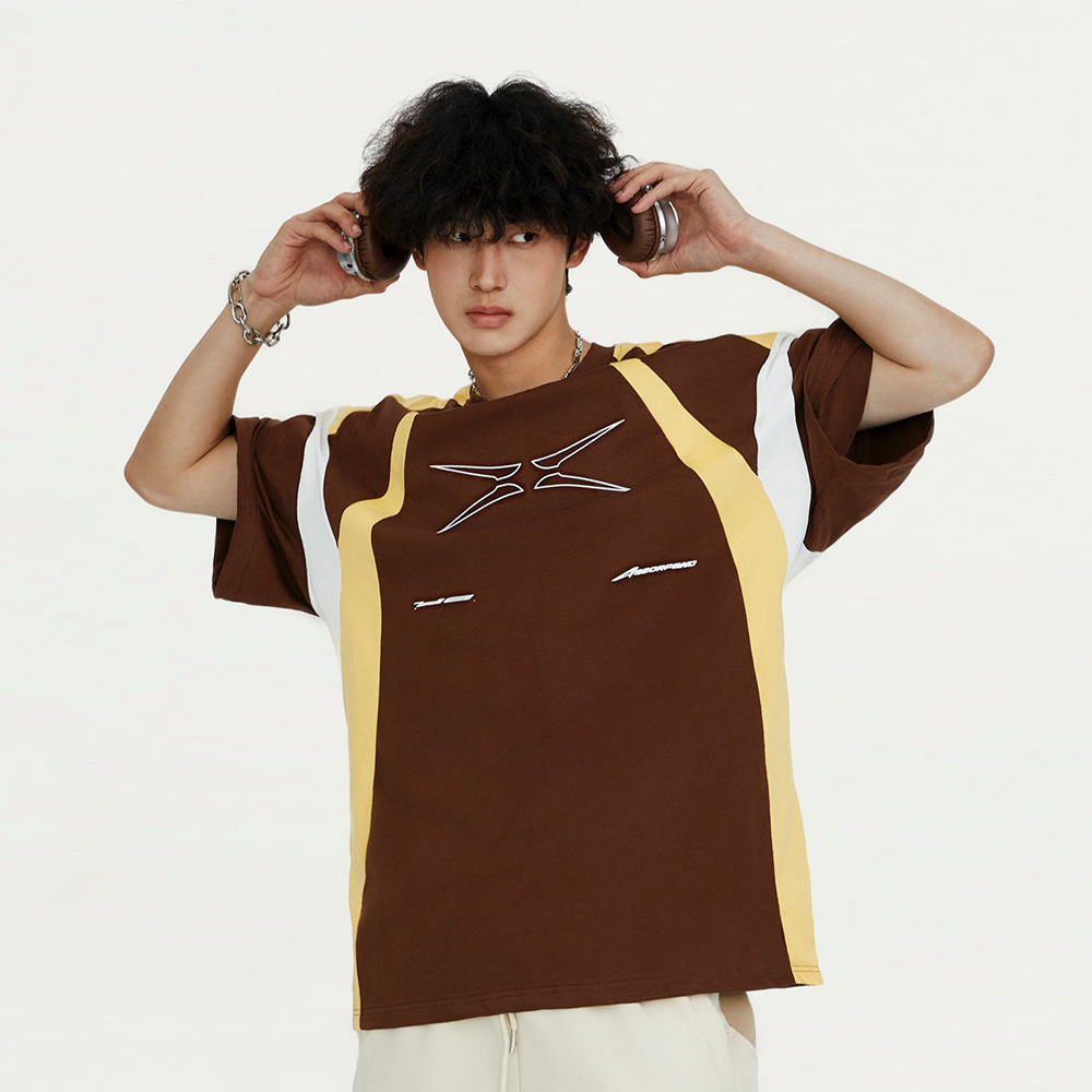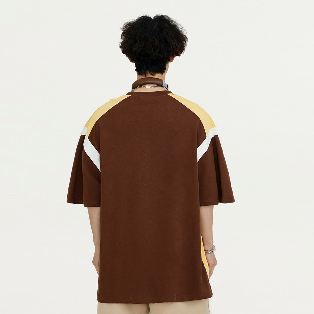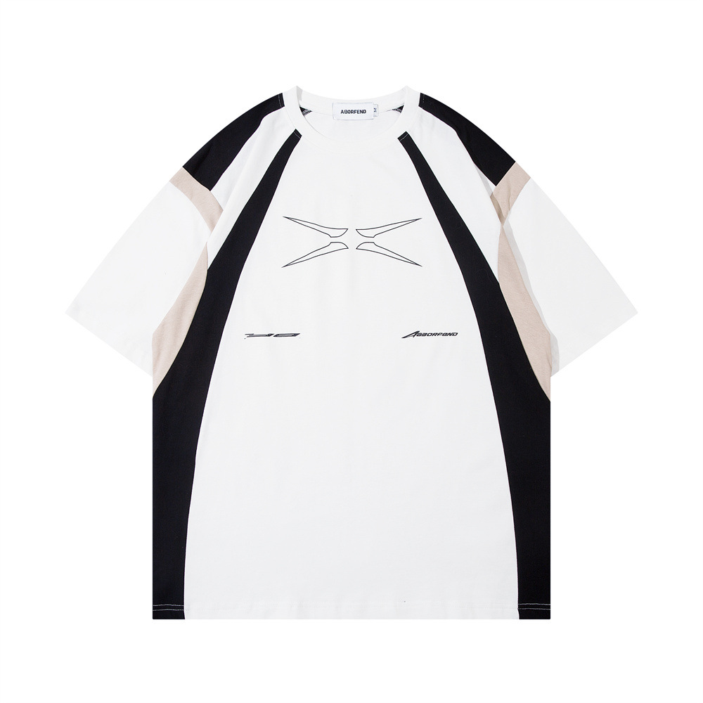 Stitching Contrast Color Pure Cotton Short Sleeve