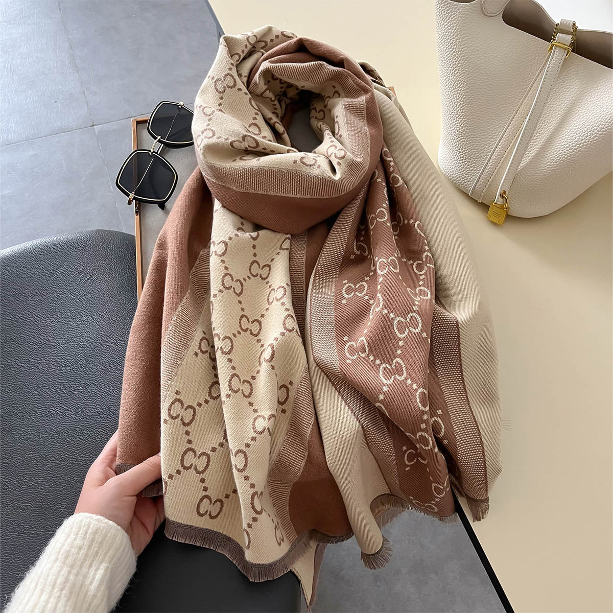 Stitching Contrast Color Scarf Women's Cashmere Warm Shawl