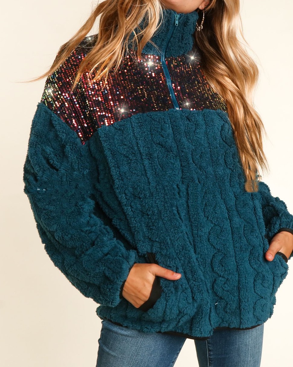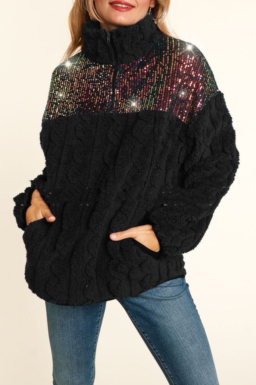 Stitching Double Pocket Top Turtleneck Sweater
