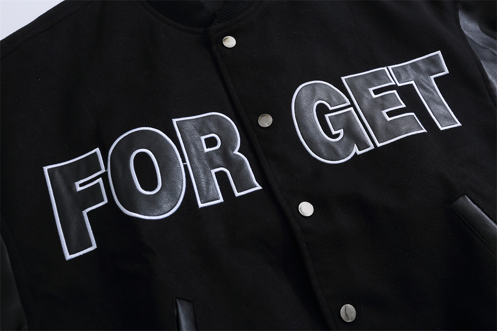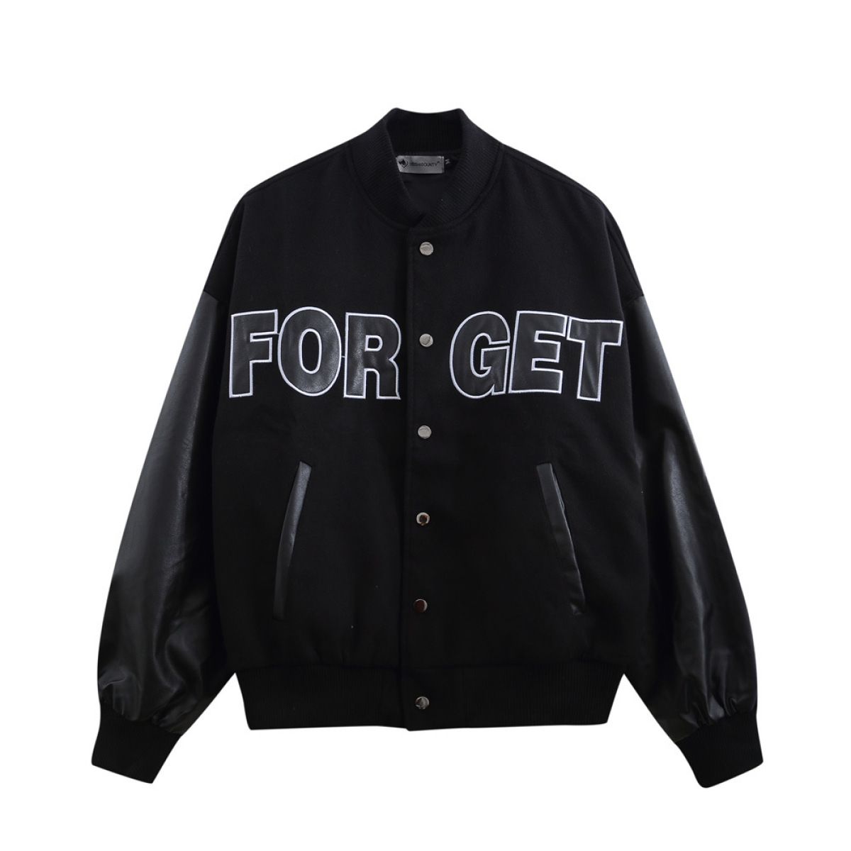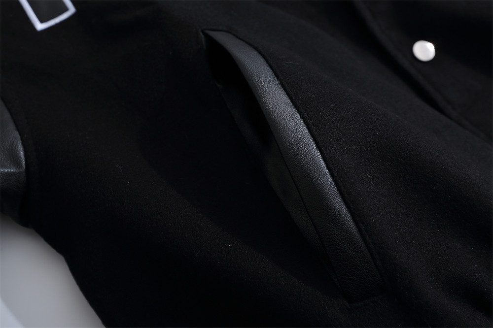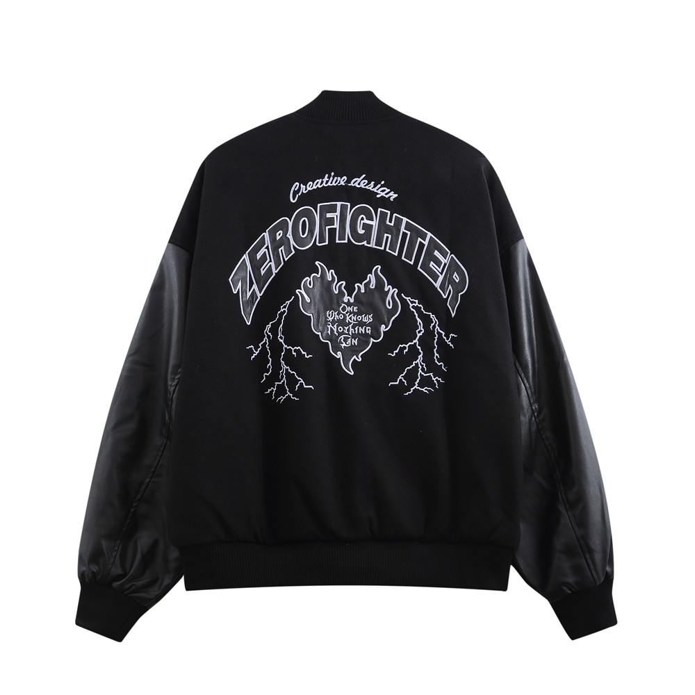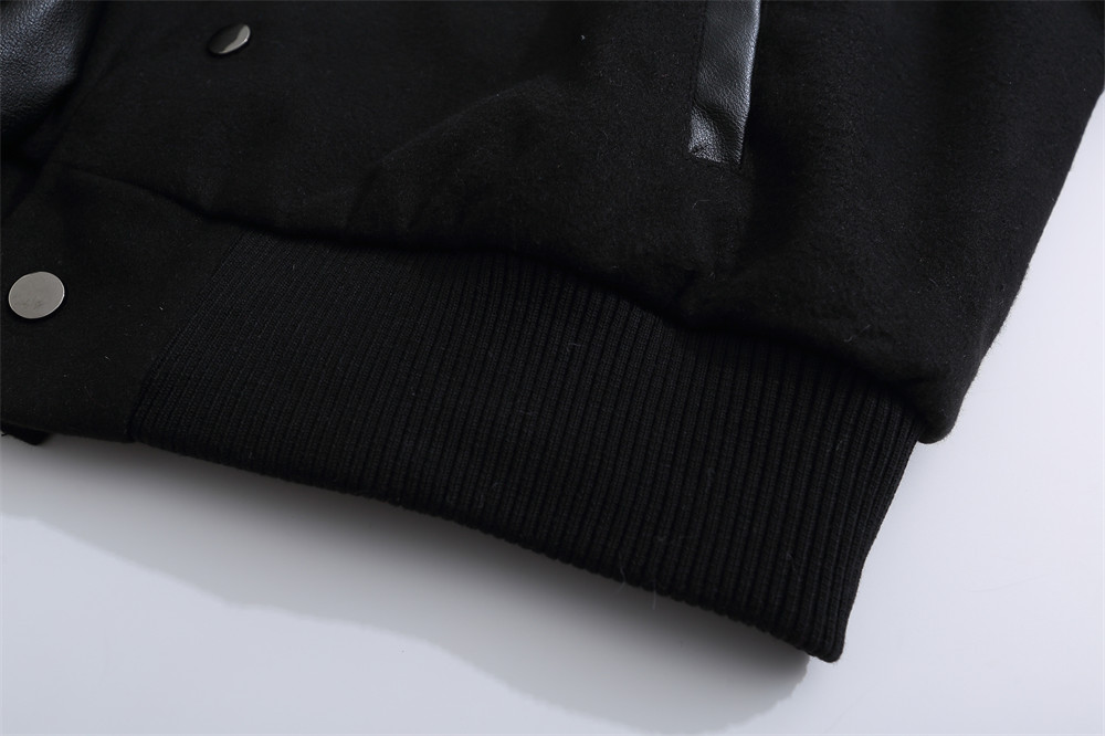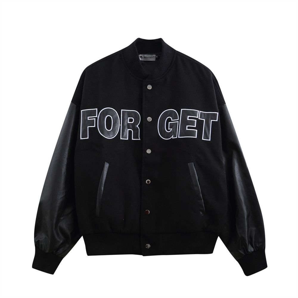Stitching PU Leather Sleeve Baseball Uniform Men's Ins Fashion Brand Letter Embroidered Jacket