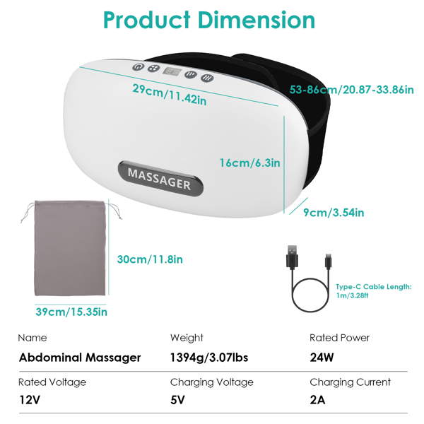 Stone Abdominal Massager - Dual Rotating Heads With 6 Red Lights, 5 Modes 3 Speeds 3 Heat Settings, 2500mAh Rechargeable, Adjustable Belt For Menstrual/Bloating Relief