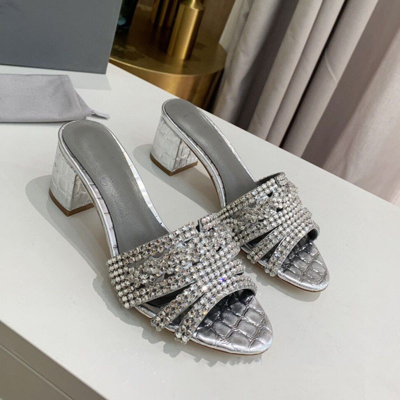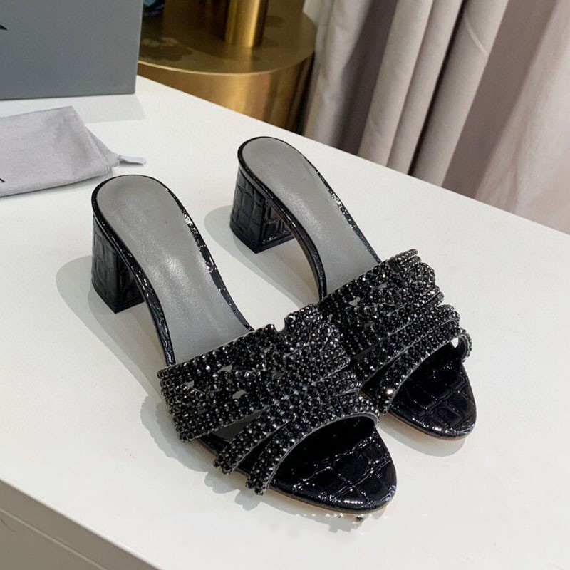 Stone Print Microfiber Rhinestones Round Toe Slippers