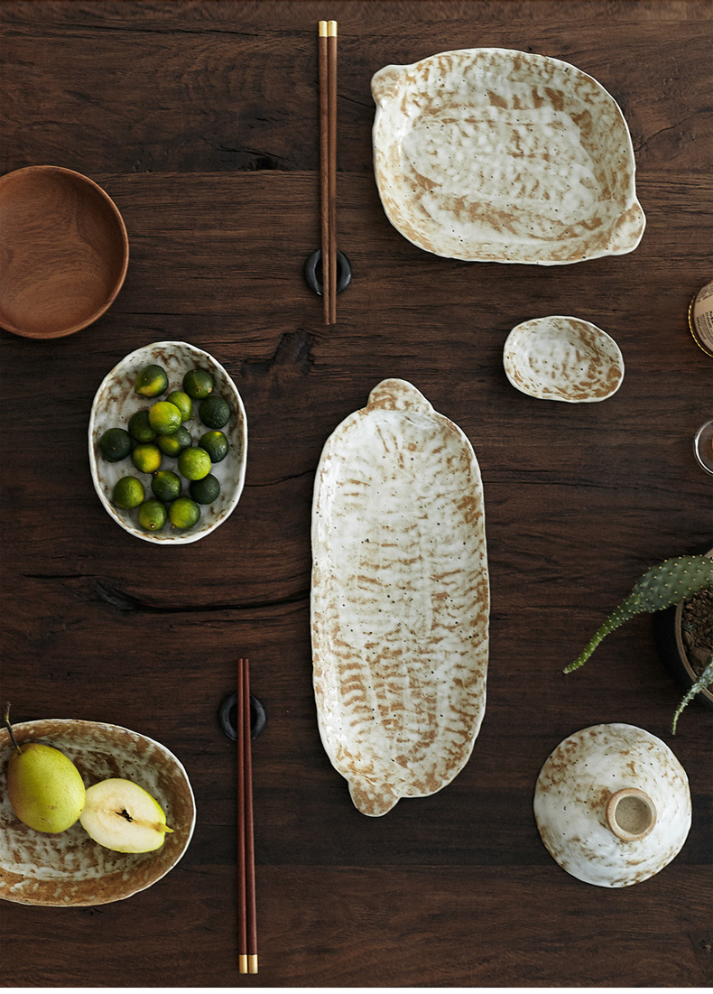 Stoneware Bowls And Plates Irregular Handmade Rectangular Cutlery