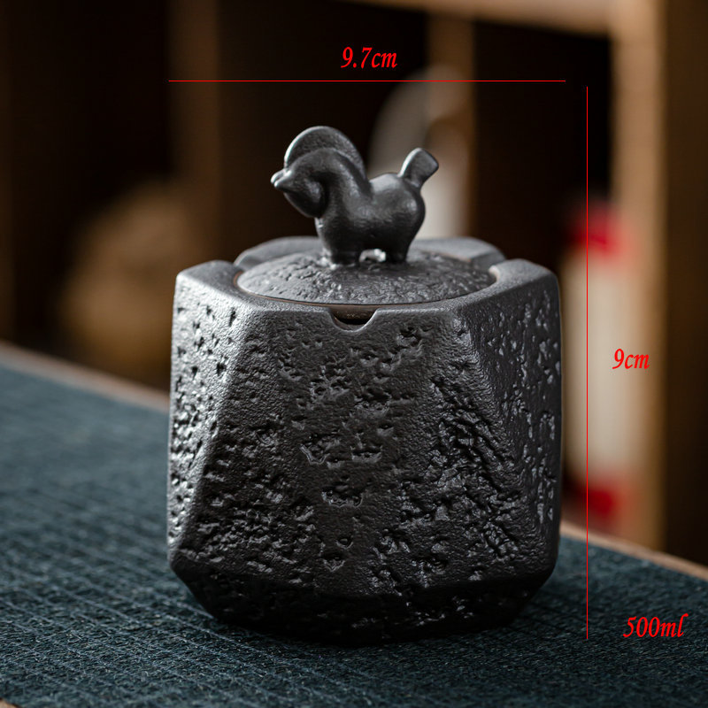 Color: gilt pony ashtray, black pottery pony ashtray, brown and yellow pony ashtray, kiln turned blue pony ashtray