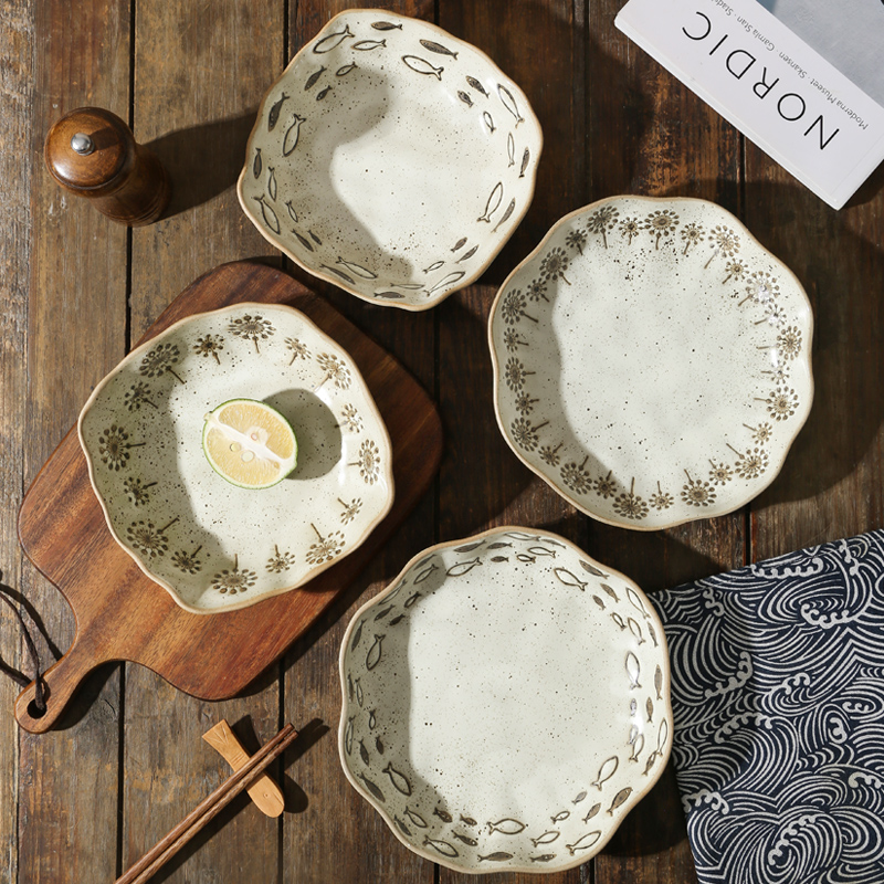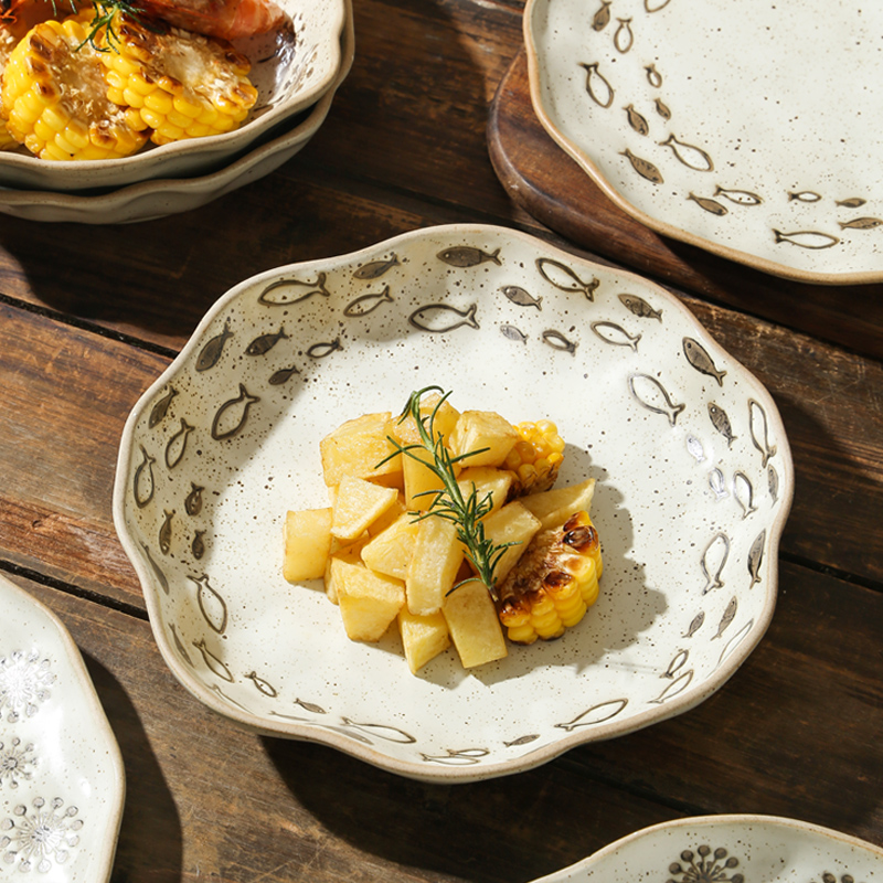 Color classification: 7-inch deep plates-small fish, 7-inch deep plates-SUNFLOWER, 8-inch meal tray-small fish, 8-inch meal tray-SUNFLOWER, 9-inch shallow plate-small fish, 9-inch shallow plate-SUNFLOWER, 10-inch shallow plate-small fish, 10-inch shallow plate-SUNFLOWER