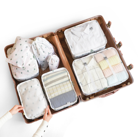 Include: 3* clothing bag, 1* underwear bag, 1* shoe bag, 2* drawstring pocket, 1* flat pocket