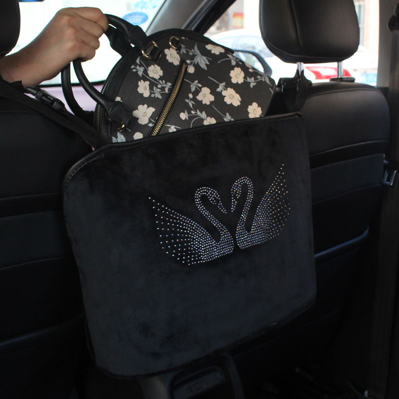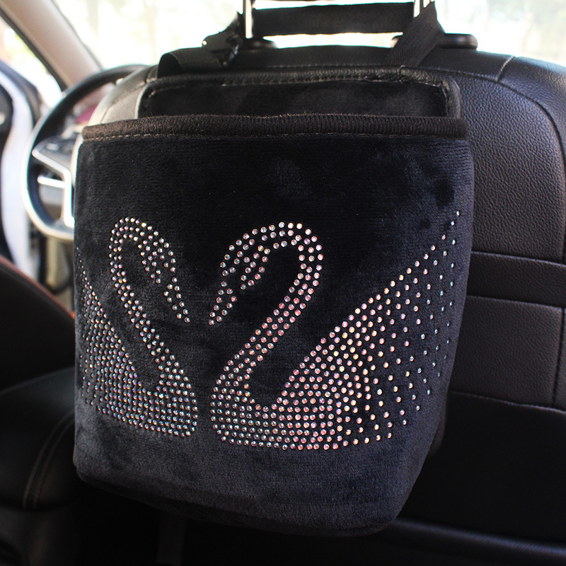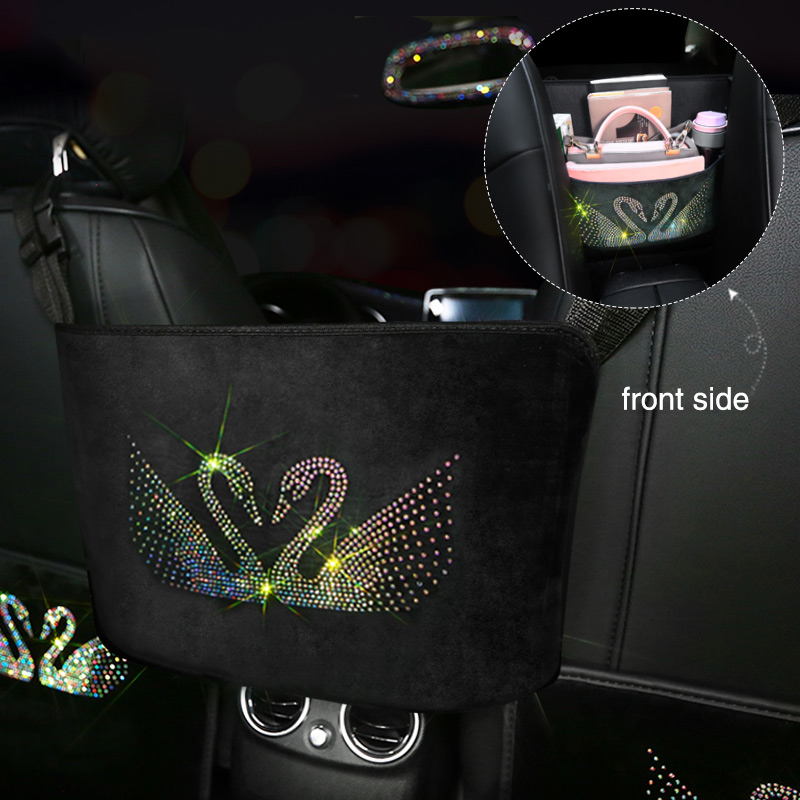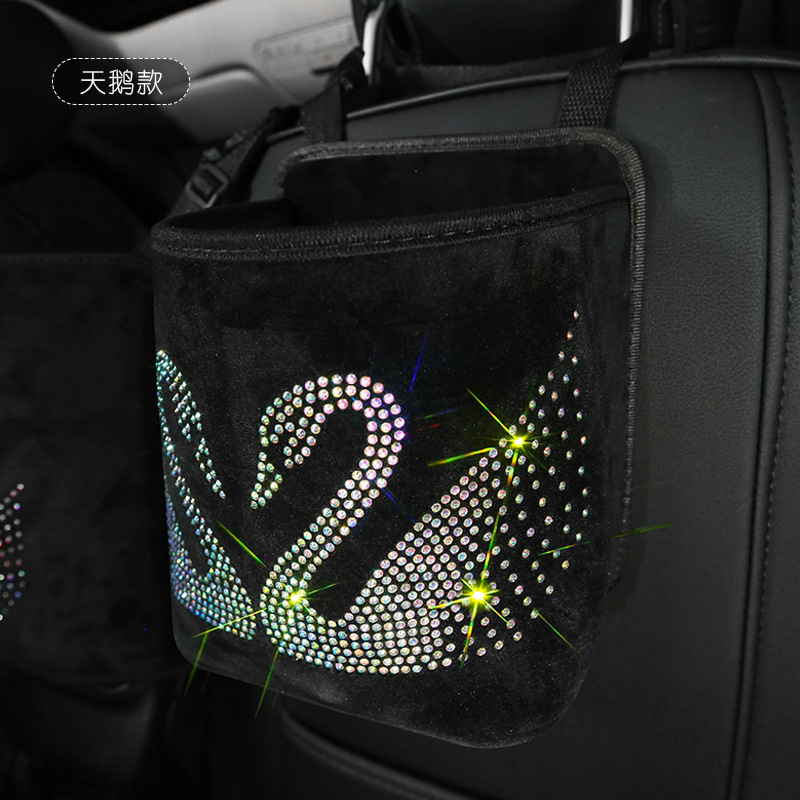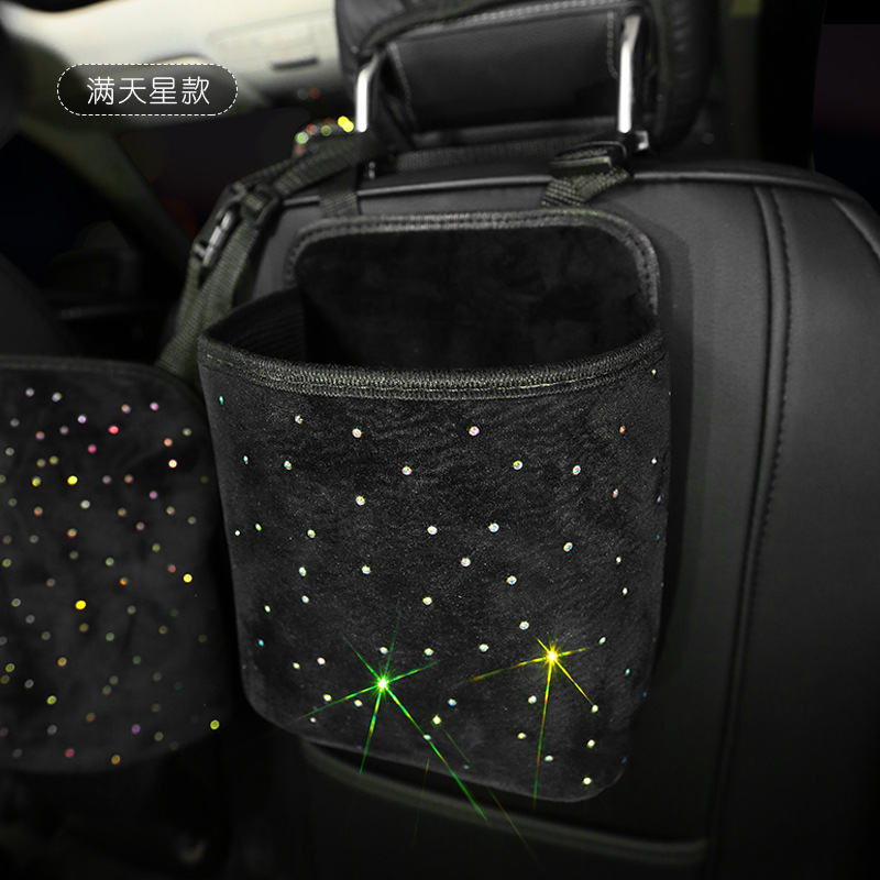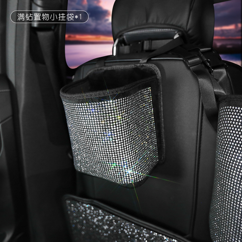Material: PU leatherSize: 18 * 10 * 21 cmItem type: Rhinestone car storage