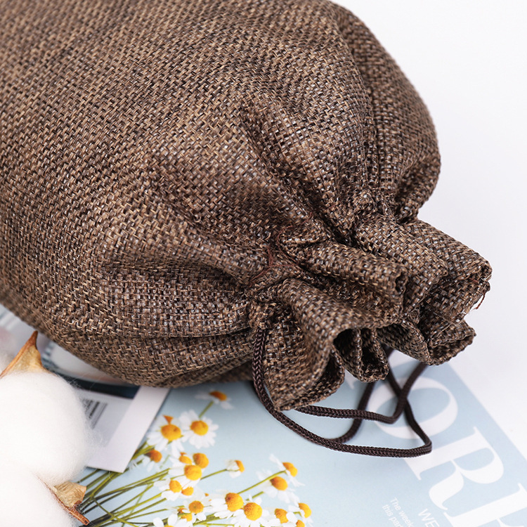 Product name: storage bagMain material: hempBrand: colognesArticle no. : home storage travel storageColor: coffeeSpecification: 17 * 22 cm