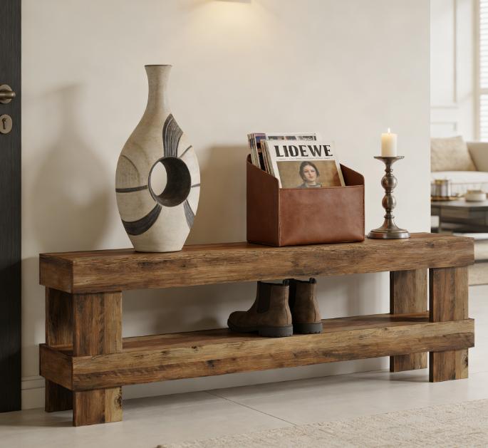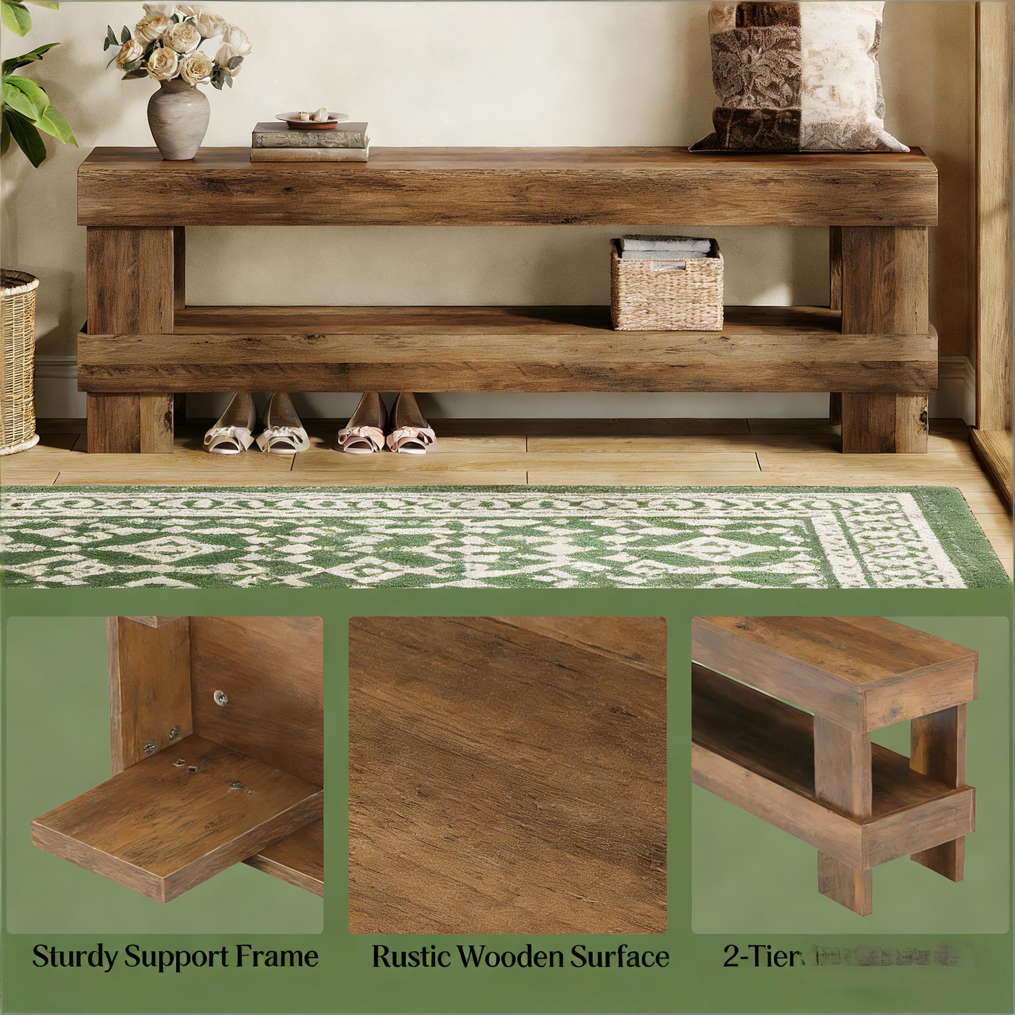 Important Reminder!!! 1) Attention: All products in our store do not support Canada self pickup ordering. Please do not create shipping labels for Canada. Our American products do not support self pickup to Canada 2)We do not ship to Alaska, Hawaii, US protectorates (e.g., Puerto Rico), P.O. boxes, or APO/FPO addresse 3)We don’t accept non-defective remorse returns Spacious and Organized Seating - Measuring 59 inches long, this bench provides comfortable seating for up to four people. A lower shelf offers ample space for shoes, while the elevated bottom design allows for easy access to frequently worn items like slippers, keeping your entryway tidy. Adaptable for Any Room - This narrow wooden bench is designed for versatile use throughout your home. It functions perfectly as an entryway shoe bench, extra seating in a living room, a casual dining bench in the kitchen, or a decorative end-of-bed bench in the bedroom. Warm Farmhouse Aesthetic - Featuring a sleek brown finish, this bench brings a touch of rustic charm to your space. Its versatile design allows it to blend seamlessly into various decor styles, including farmhouse, modern, and mid-century, adding both function and beauty. Durable and Stable Build - Constructed from premium MDF, this shoe bench is built to withstand daily wear and tear. Its sturdy legs are paired with a 3-inch thickened tabletop to ensure reliable stability for all your seating, storage, and decorative needs. Simple and Supported Setup - The bench arrives with all necessary tools and detailed instructions for straightforward assembly. All components are clearly marked for a hassle-free experience. Our customer service team is also available to provide assistance if needed.