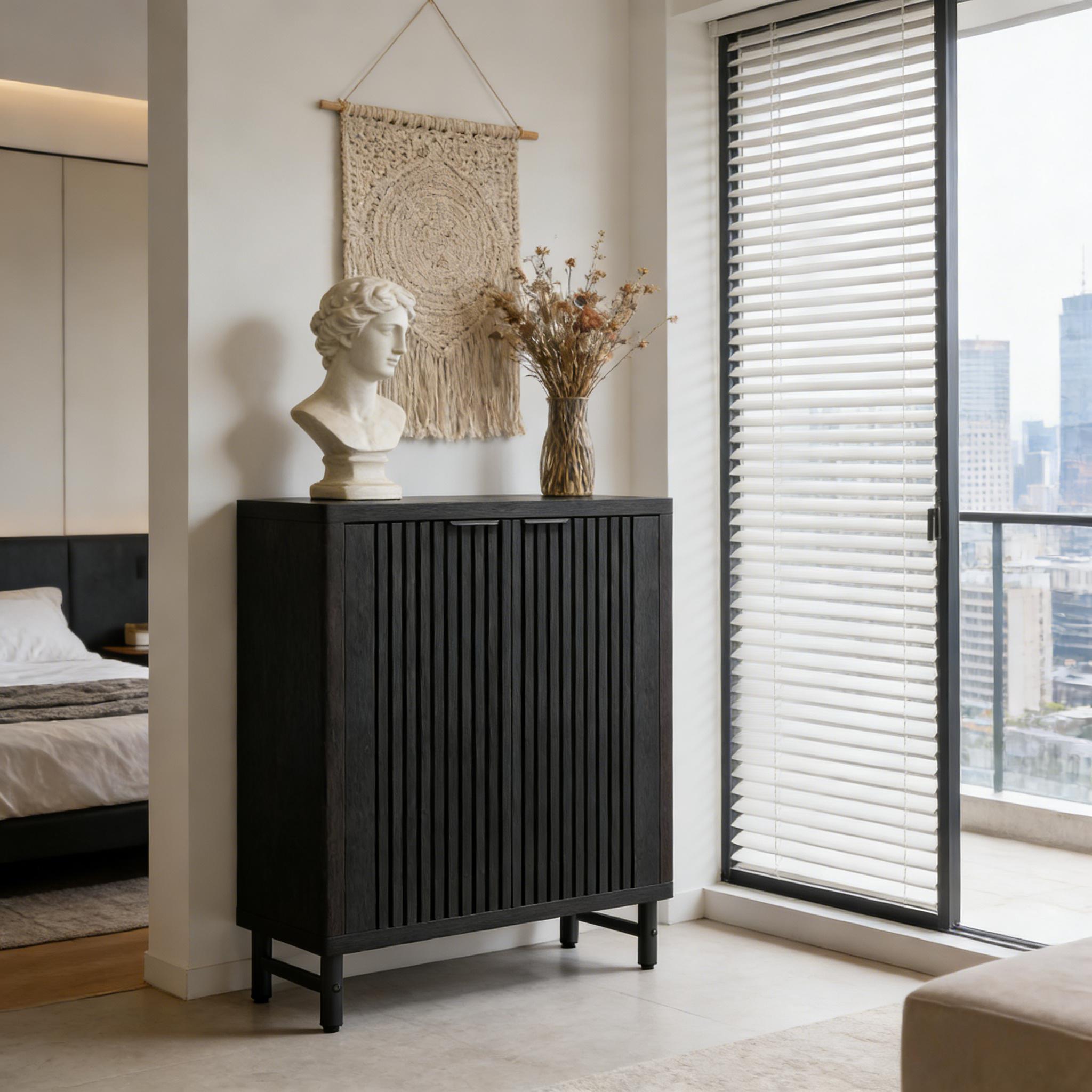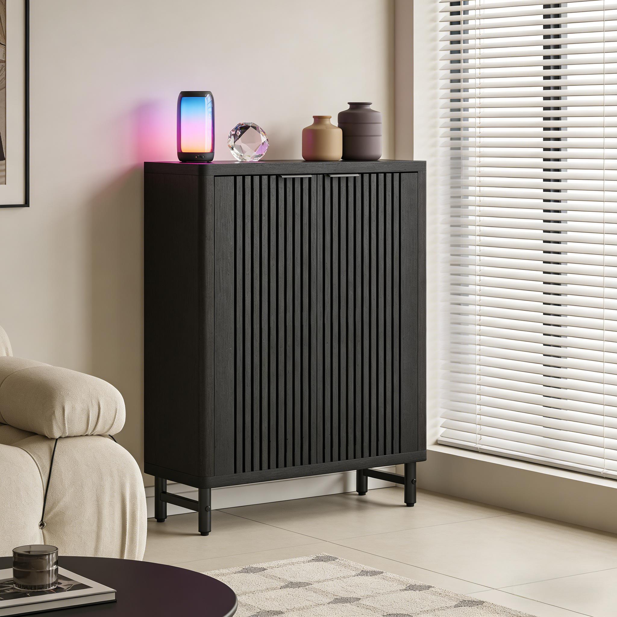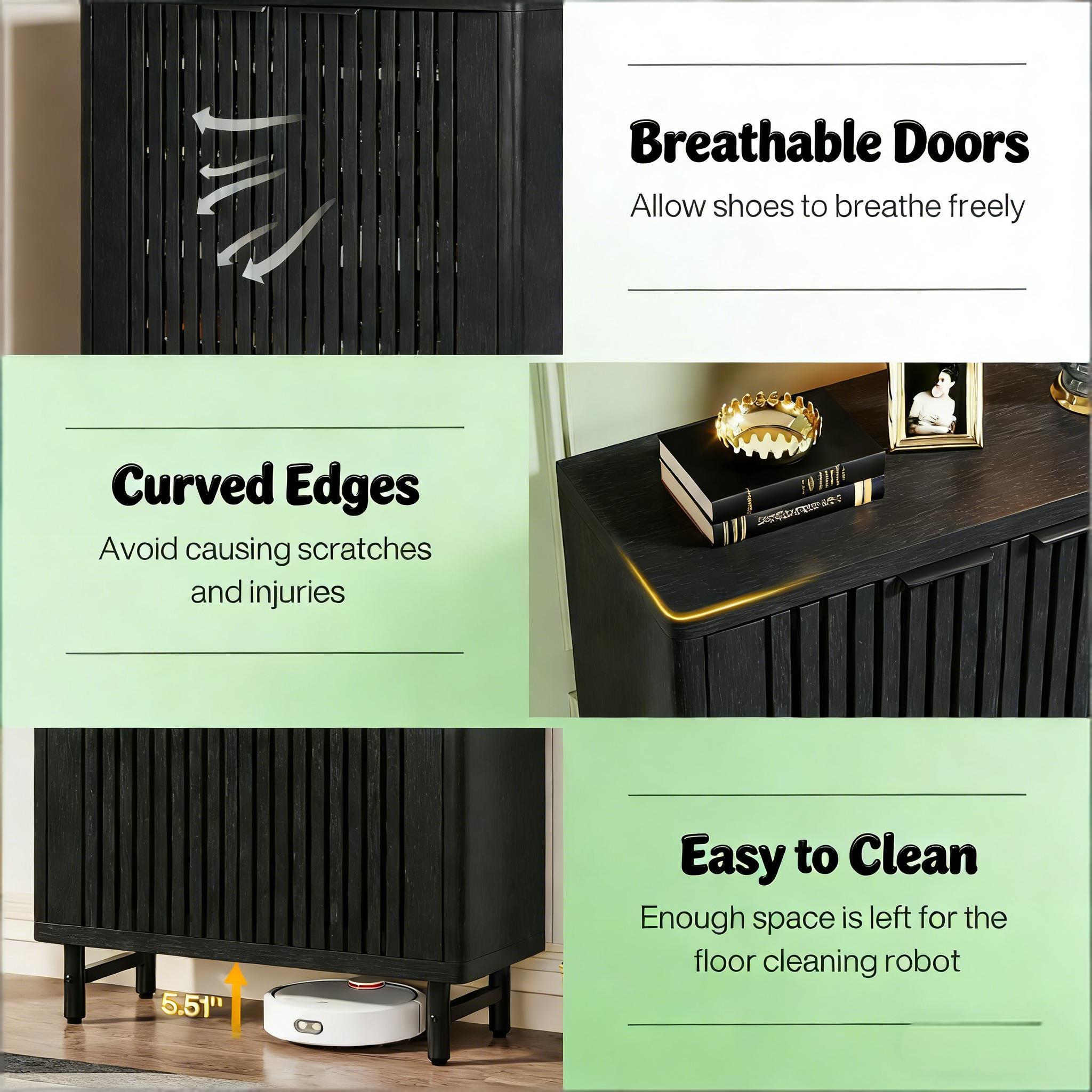 Important Reminder!!! 1) Attention: All products in our store do not support Canada self pickup ordering. Please do not create shipping labels for Canada. Our American products do not support self pickup to Canada 2)We do not ship to Alaska, Hawaii, US protectorates (e.g., Puerto Rico), P.O. boxes, or APO/FPO addresse 3)We don’t accept non-defective remorse returns Breathable Wooden Shoe Cabinet - Featuring well-ventilated louver doors in a stunning finish, this lightweight cabinet keeps your shoes fresh and wards off mildew, while blending seamlessly with your decor. Spacious Storage - Measuring 33.46" W x 13.78" D x 43.31" H, it houses an open lower shelf for everyday items. Adaptable Shelving - Accommodate footwear of different types and sizes with six adjustable shelves, perfect for everything from slippers to boots. Perfect for everything from slippers to boots. Durable & User-Friendly - Crafted from high-quality MDF with sturdy metal legs, our shoe cabinet with doors is eco-friendly, easy to clean, and features durable hinges for smooth door operations. Safe Assembly - Comes with an easy-to-follow manual, requisite hardware, and a rear anti-tip device for safe, simple assembly and use. Its rounded edges minimize the risk of injury, prioritizing your family's safety. Get yours today for an organized shoe collection!
