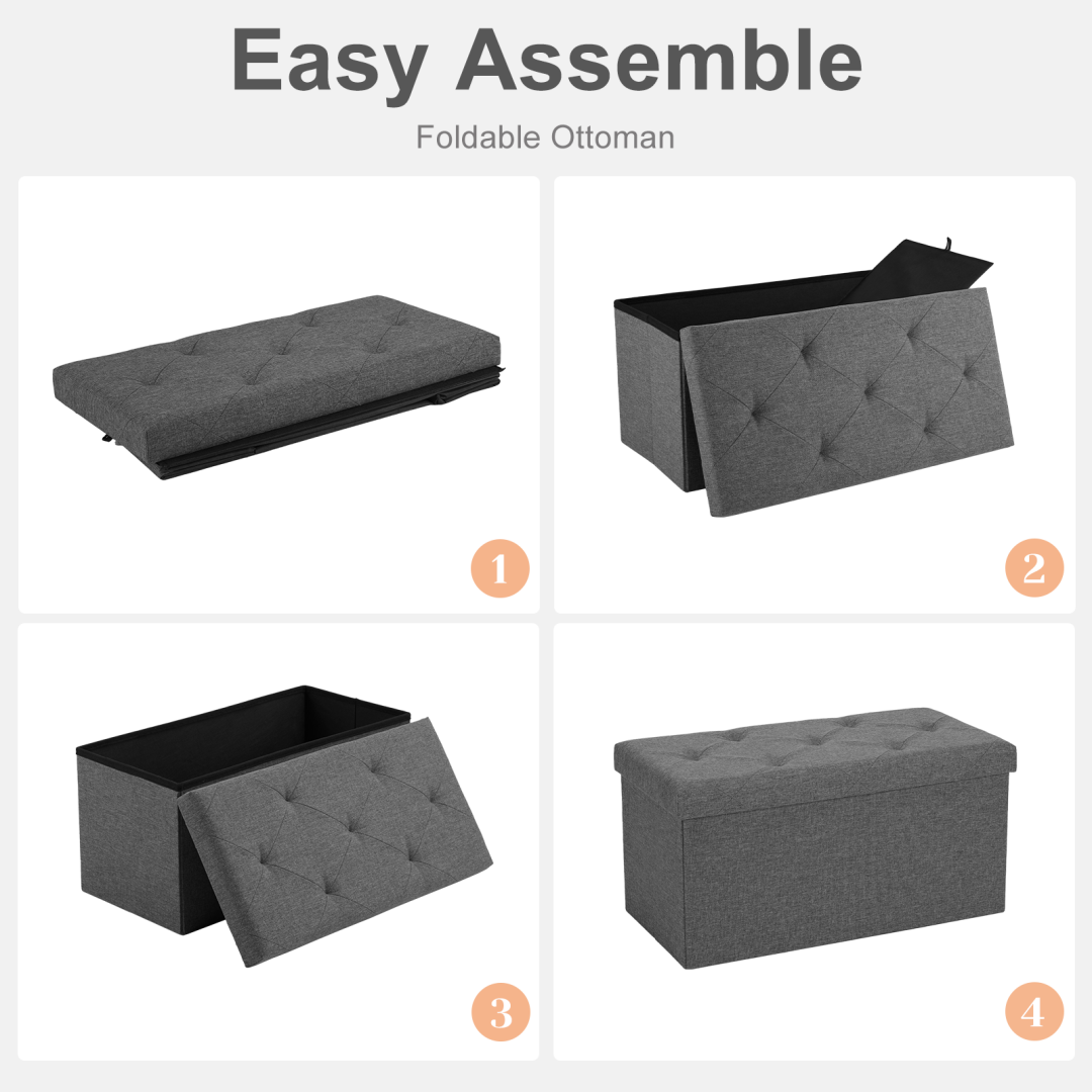 • 【Easy Set Up】Unfold, insert the bottom panel, connect the feet, and your folding storage bench is set for use.