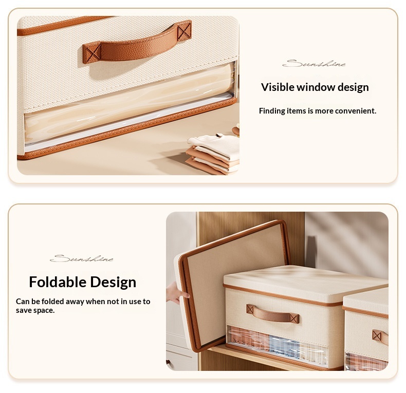 Colors: [5 compartments] open-style storage box with window and PU-edged trim; [no compartments] open-style storage box with window and PU-edged trim; [5 compartments] storage box with lid, window, and PU-edged trim; [no compartments] storage box with lid, window, and PU-edged trim