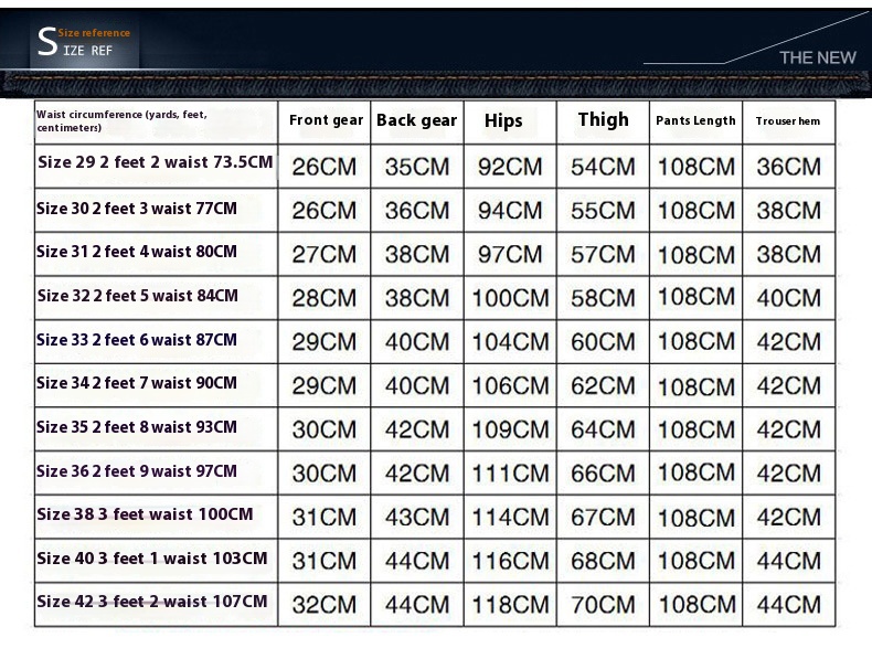 Dimensions: 29(2 feet 2),30(2 feet 3),31(2 feet 4),32(2 feet 5),33(2 feet 6),34(2 feet 7),35(2 feet 8),36(2 feet 9),38(3 feet),40(3 feet 1),42(3 feet 2)