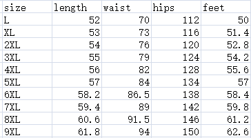 Size: L, XL, XXL, XXXL, 4XL, 5XL, 6XL, 7XL, 8XL, 9XL