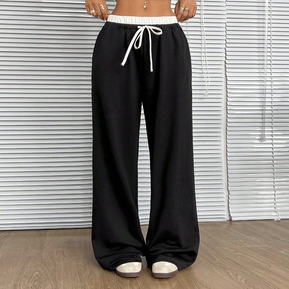 Straight Casual Pants Loose Elastic Waist Mop Trousers