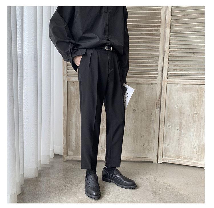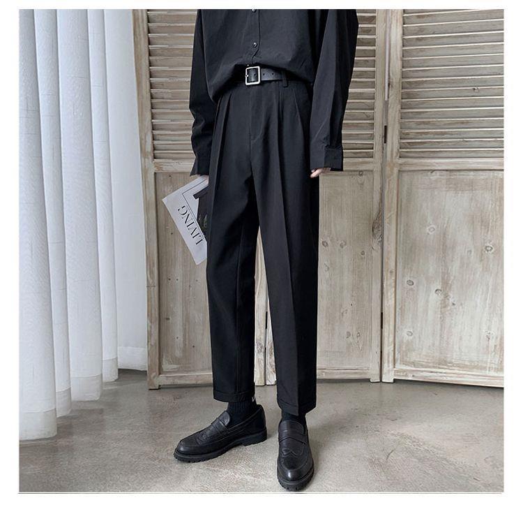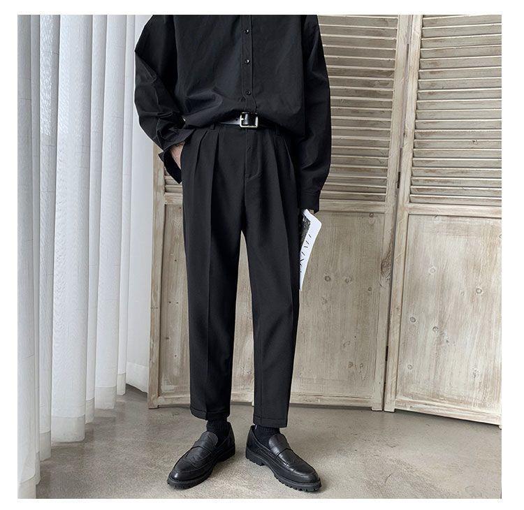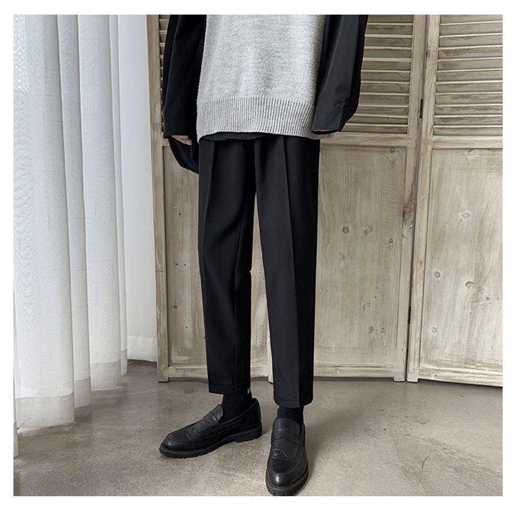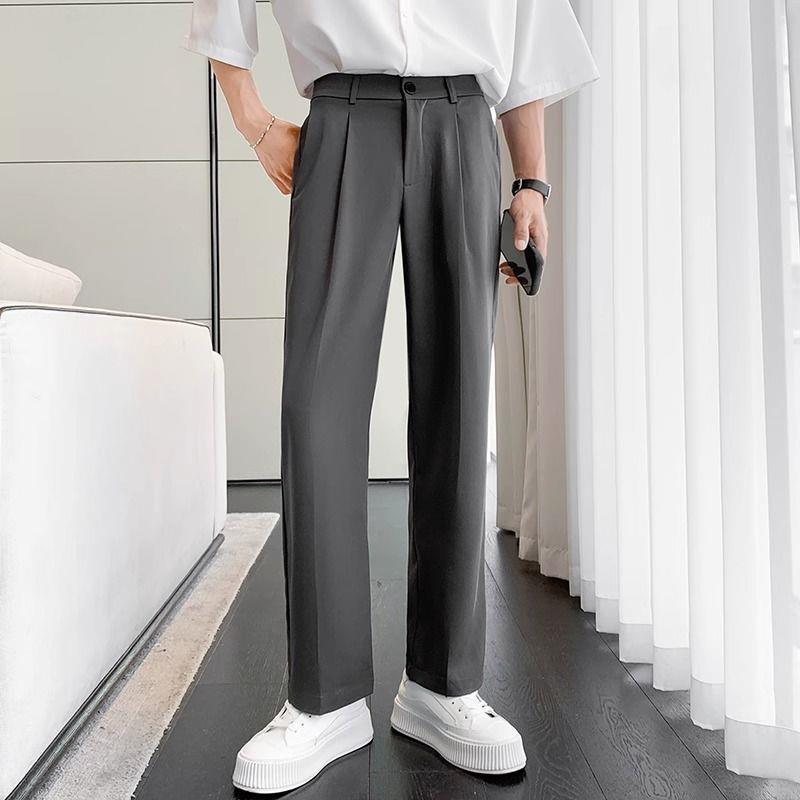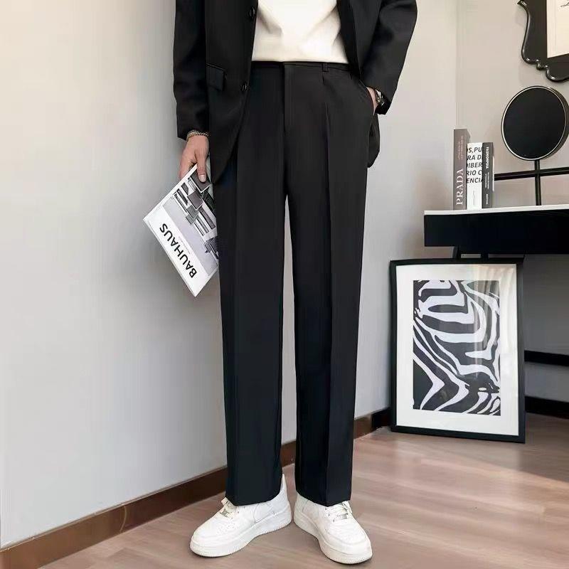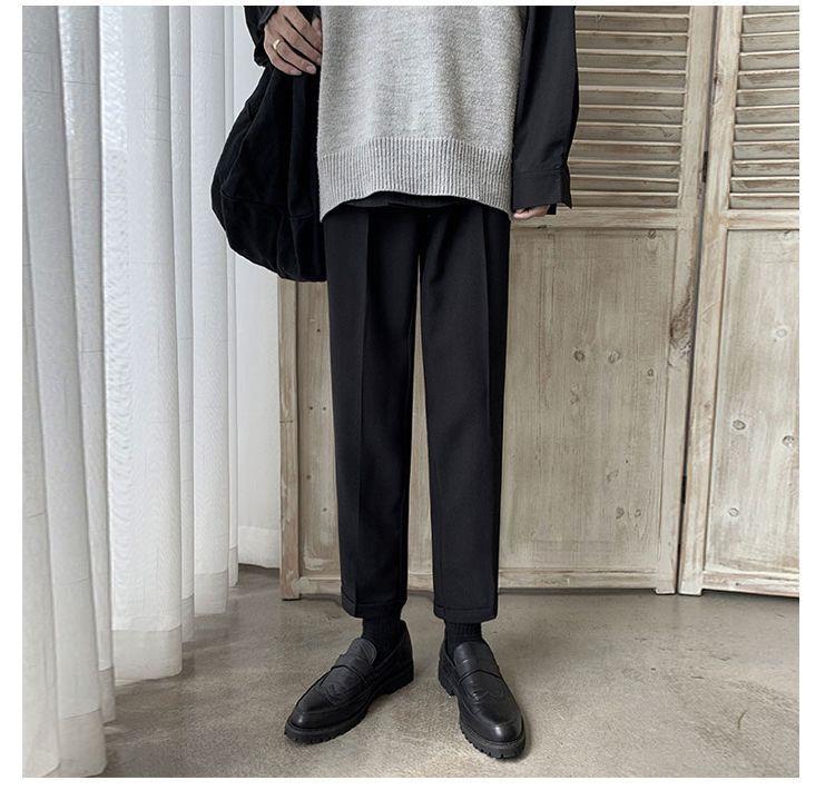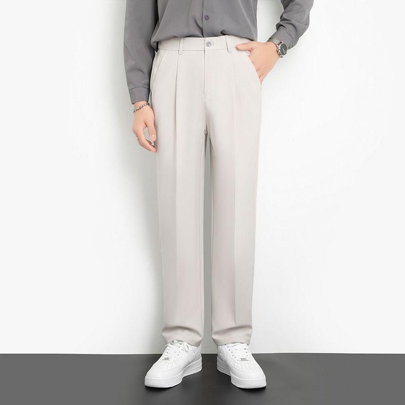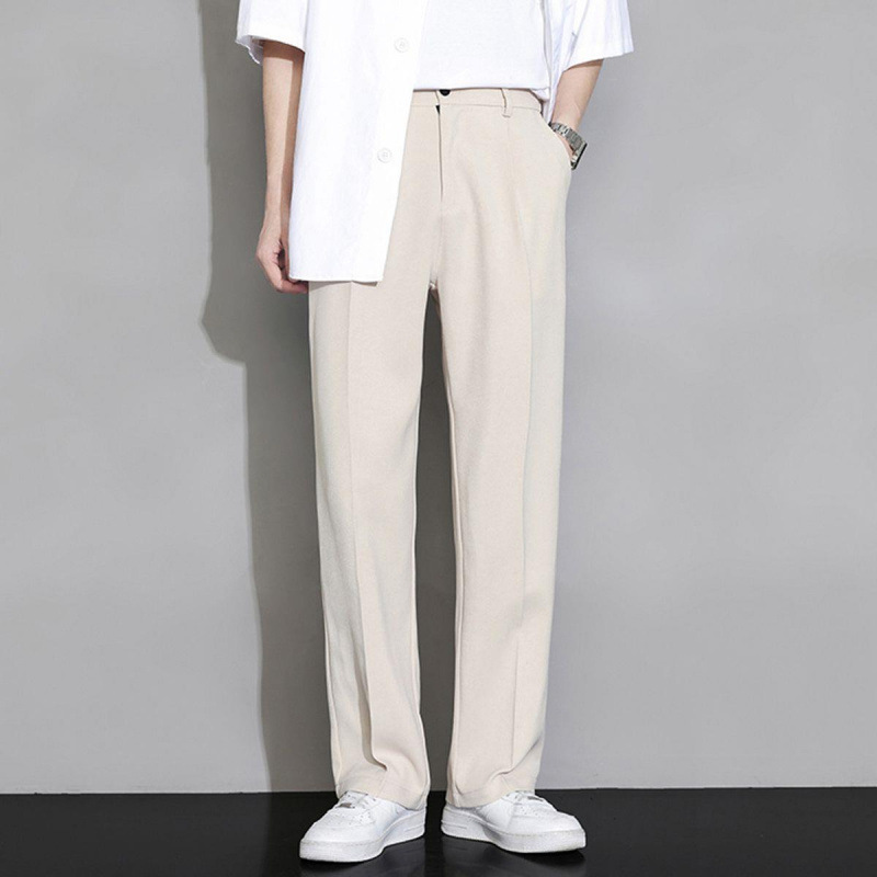 Colors: Black straight-leg pants, dark gray straight-leg pants, light gray straight-leg pants, khaki straight-leg pants