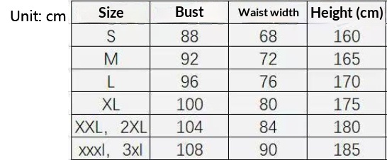 Sizes: XS, S, M, L, XL, XXL, XXXL