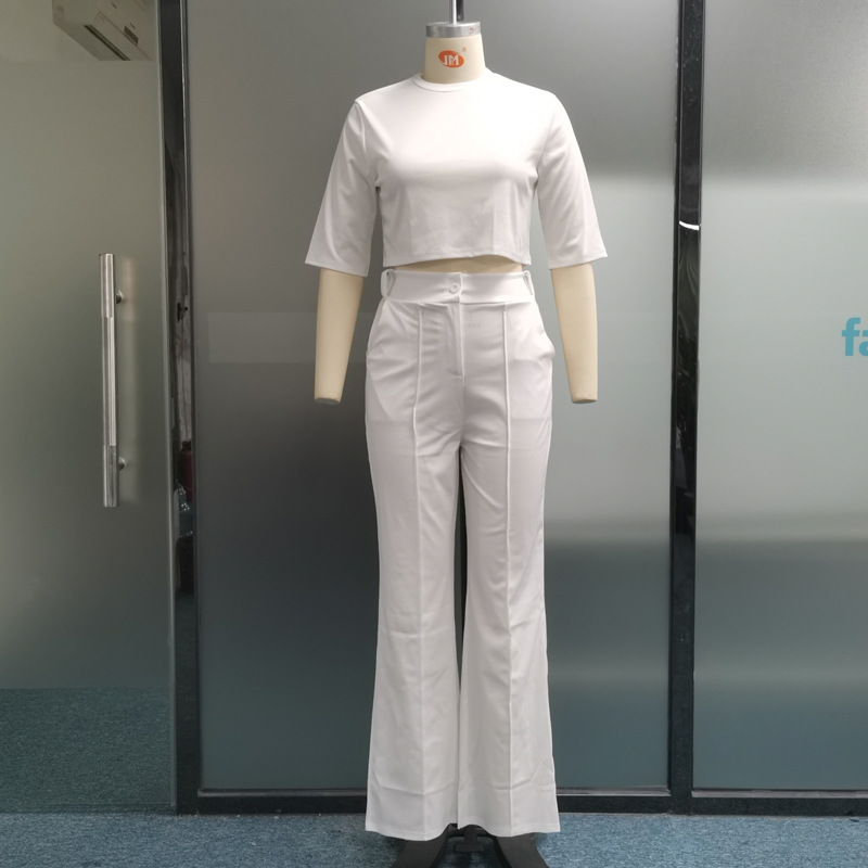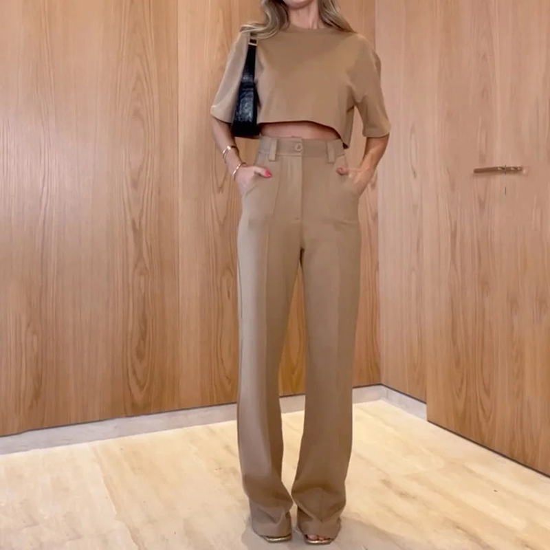 Straight Leg Trousers Solid Two-piece Set