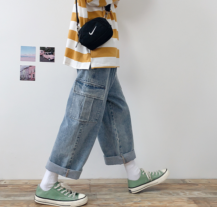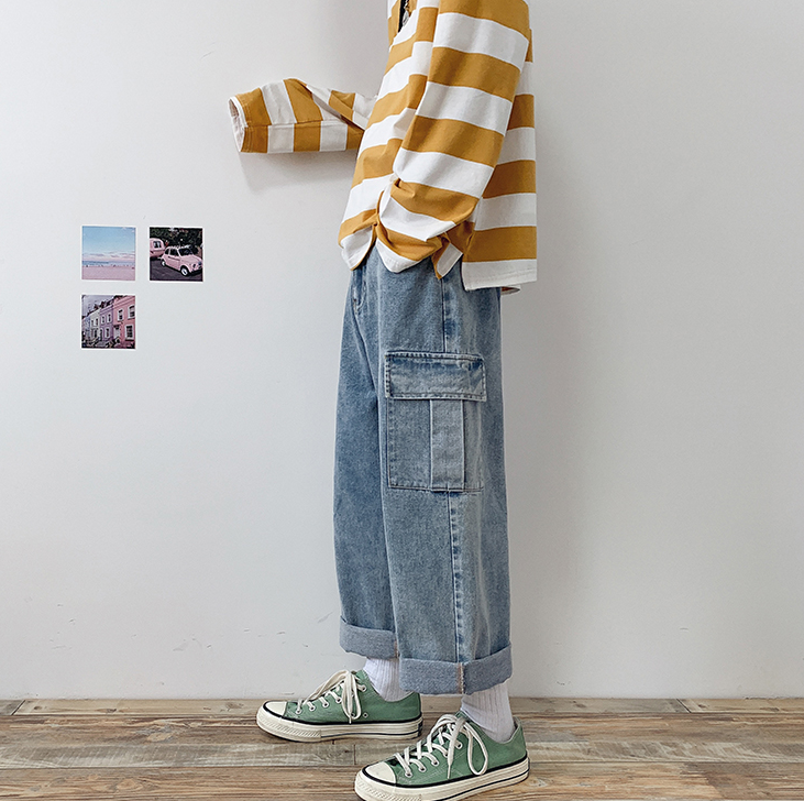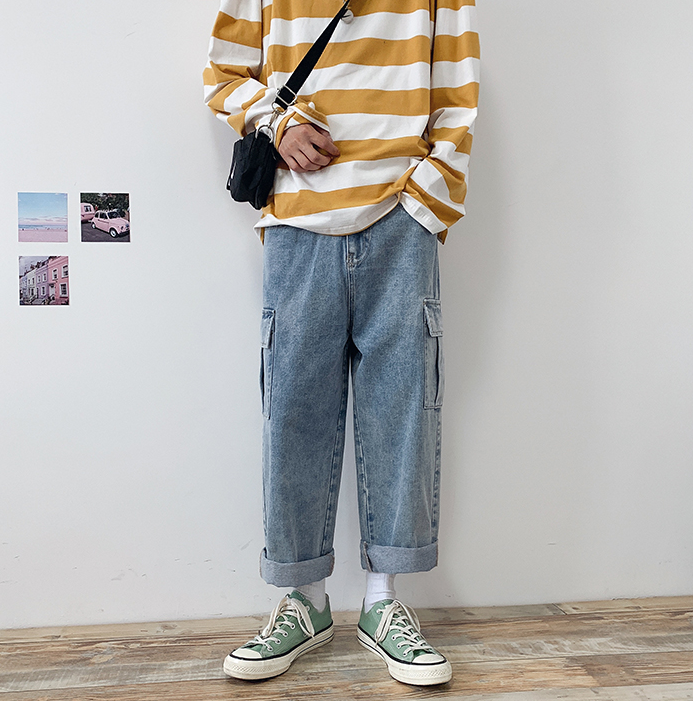 Straight loose nine-point men's jeans