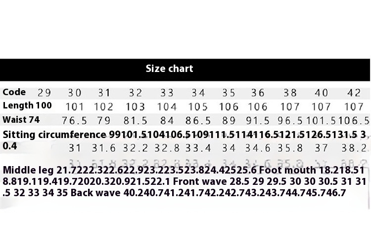 Size: 29,30,31,32,33,34,35,36,38,40,42