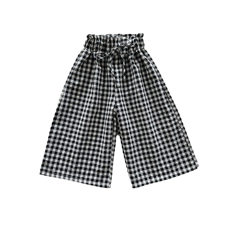 Straight Plaid Wide Leg Cropped Pants Bud Shaped Waist