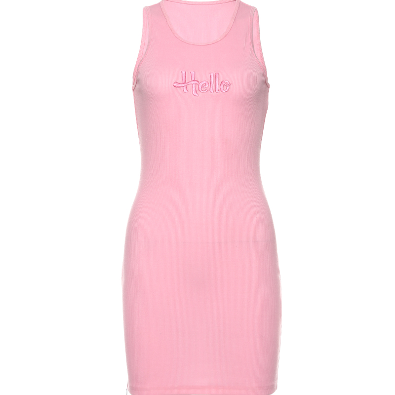 Strange force girl pink knit dress waist shows thin letter waistcoat zipper