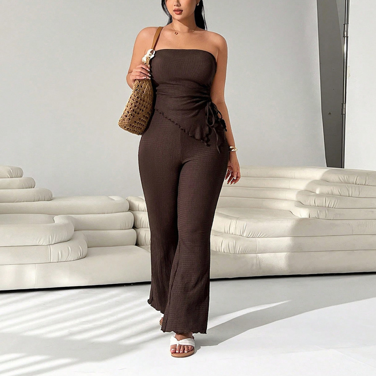 Trendy elements: Lace-up, solid color, ruffles