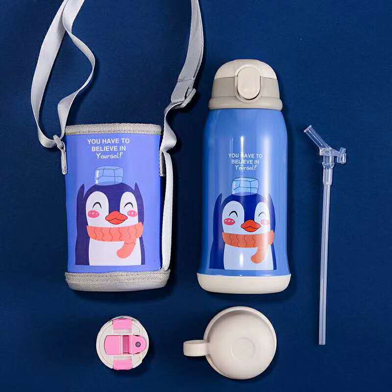 Design features: a cup of three lids, interchangeable; can keep warm for more than 6 hours, cold for two days; with cup sleeve strap, easy to carry; cartoon design, cute and fashionable, is a favorite of children.