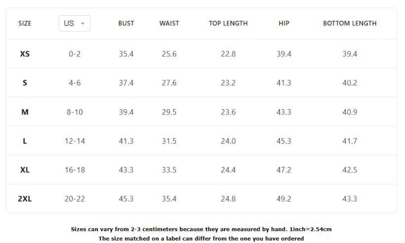 Sizes: XS, S, M, L, XL, XXL
