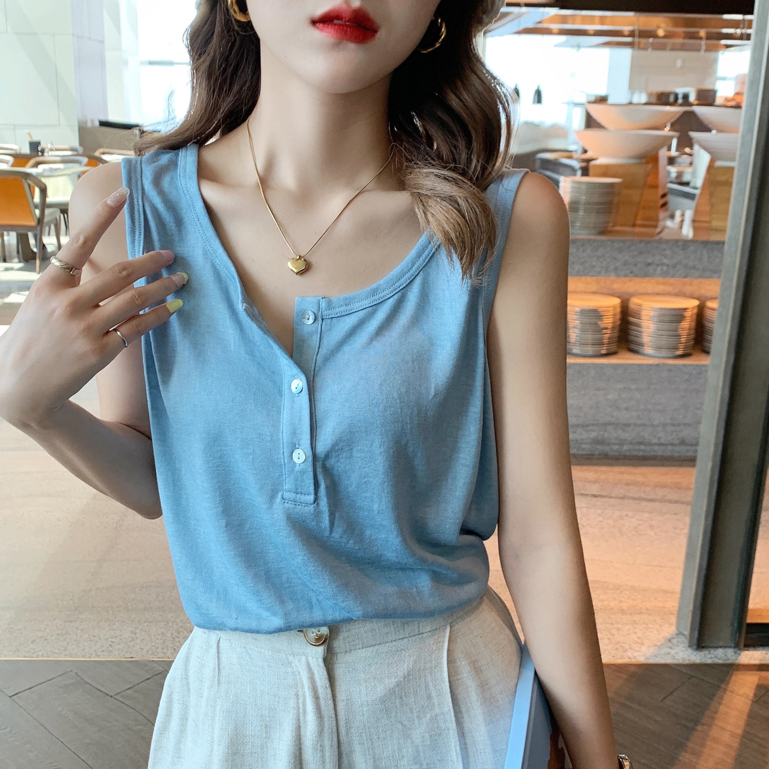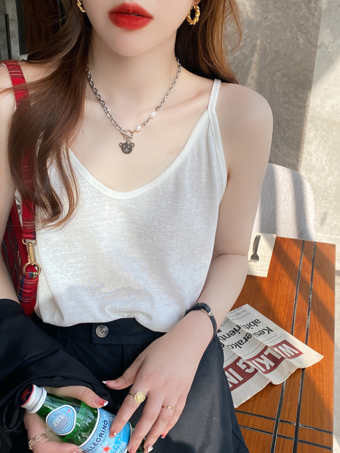 Strap Vest Women's Summer Outerwear White Base Layer