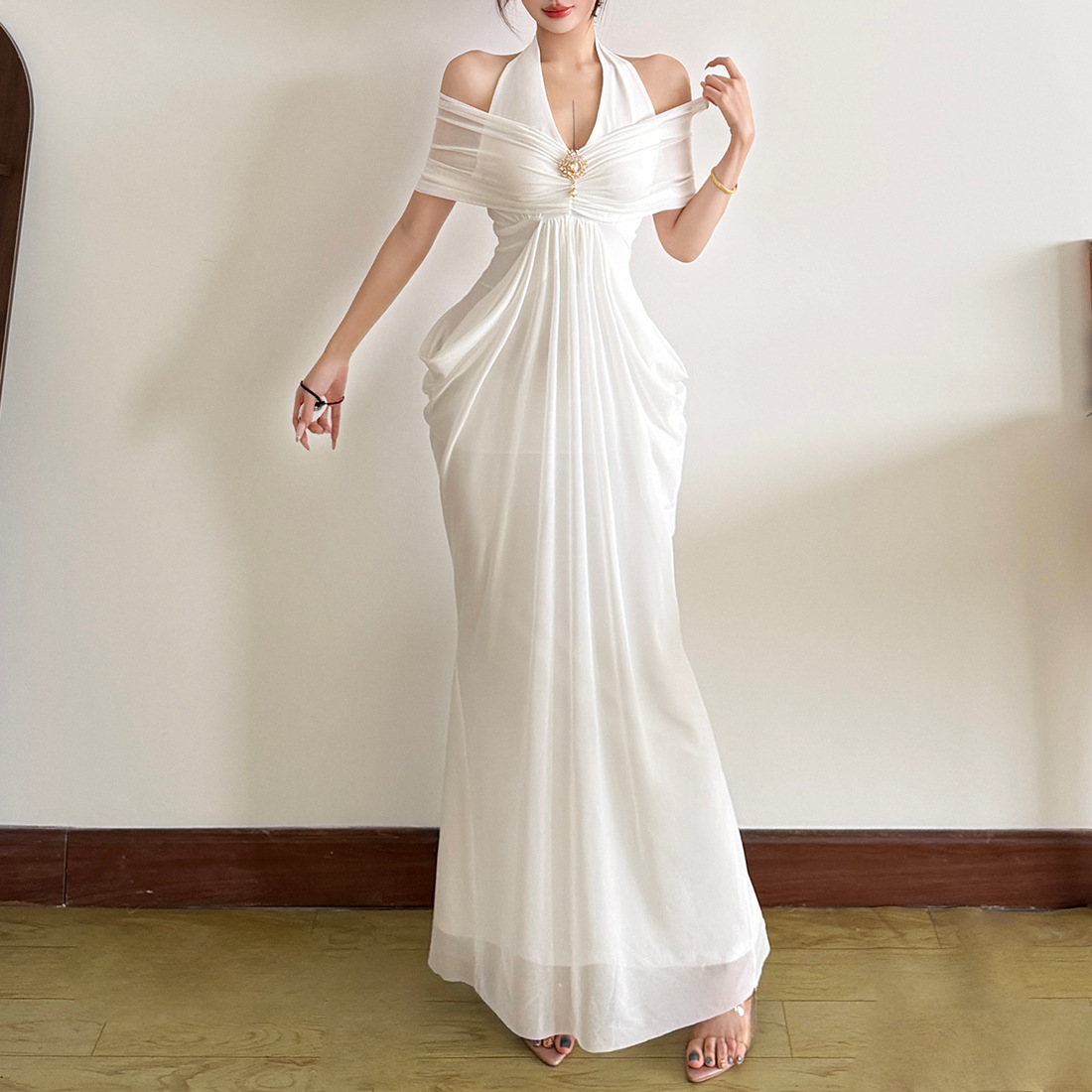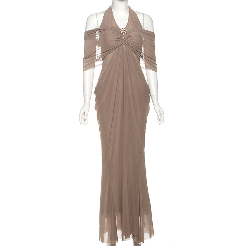 Pattern Solid Color Skirt Style Patchwork Skirt Colors Khaki, Black, White Waist Style High Waist Sizes S, M, L, XL, 2XL Fit Slim Fit Style Type Celebrity-Style Casual Wear Combination Single Piece Skirt Length Floor-Length Trendy Element Patchwork Design Halter Neck Fabric Name 100 Polyester Sleeve Style Sleeveless Main Fabric Composition 100 Polyester Sleeve Length Sleeveless Skirt Category One-Piece Dress Style Elegant Womens Style Craftsmanship Mesh Patchwork