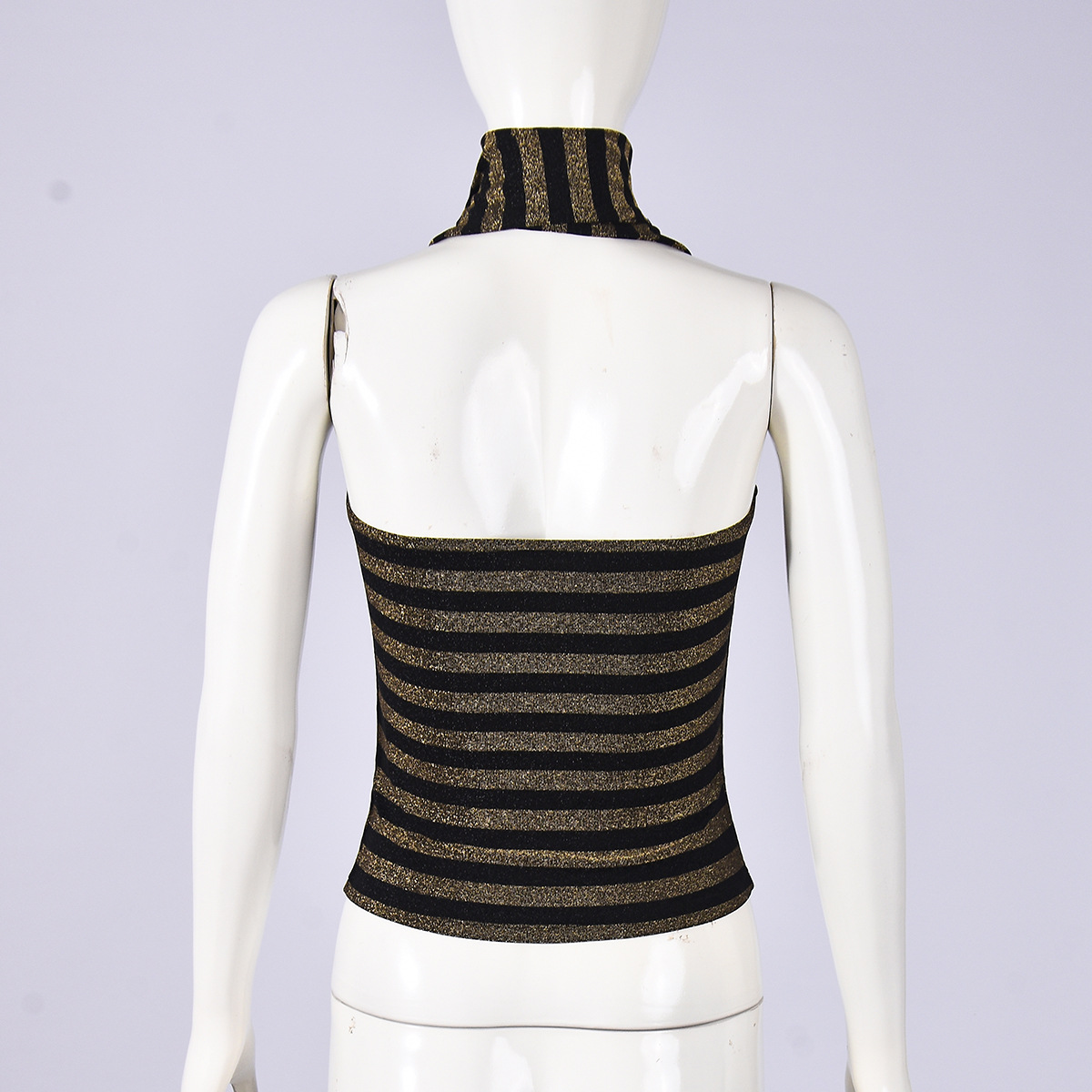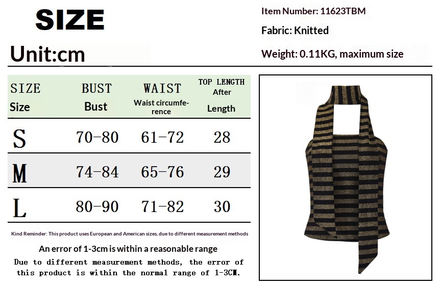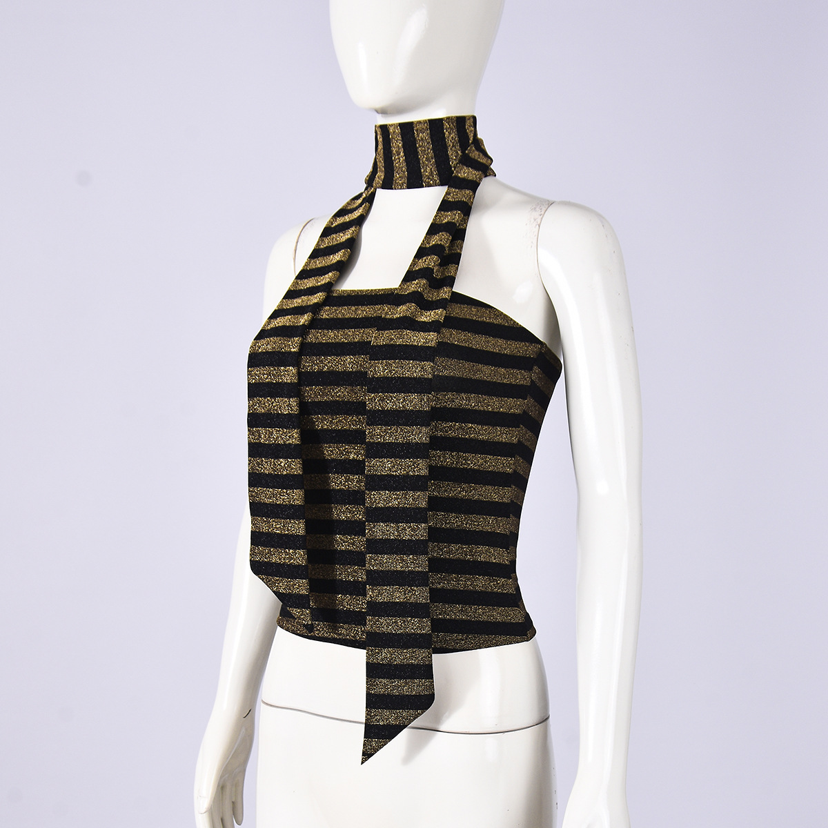 Product information: Pattern: Striped/Plaid Color: Black and Gold Sizes: S, M, L Main Fabric Content: Polyester